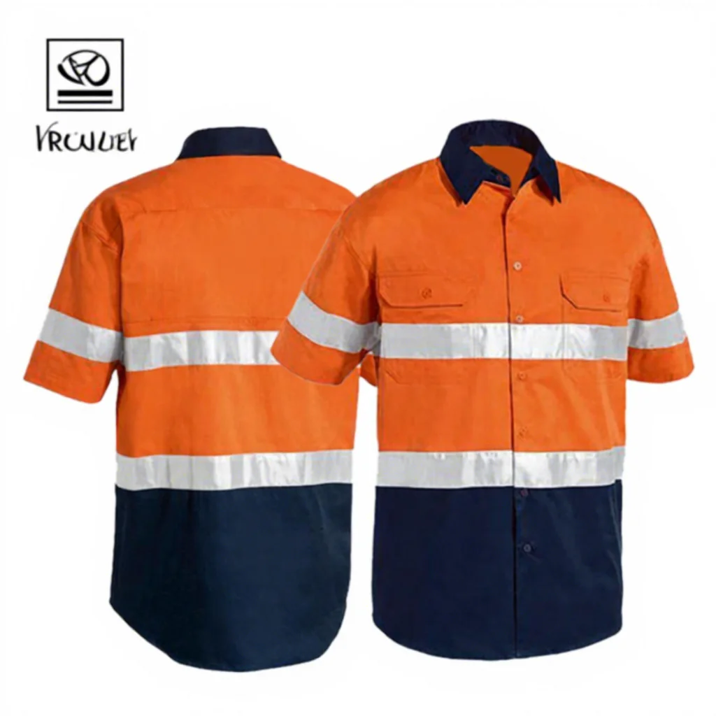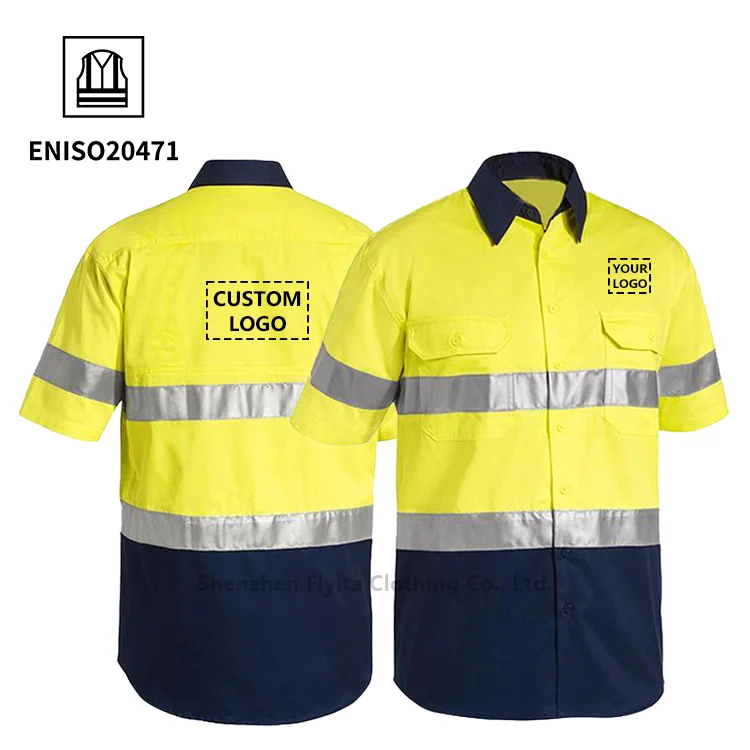 Breathable Construction Hi Vis Workwear Fluorescent Uniform Cotton Embroidery Work Clothes Safety High Visibility Work Shirt