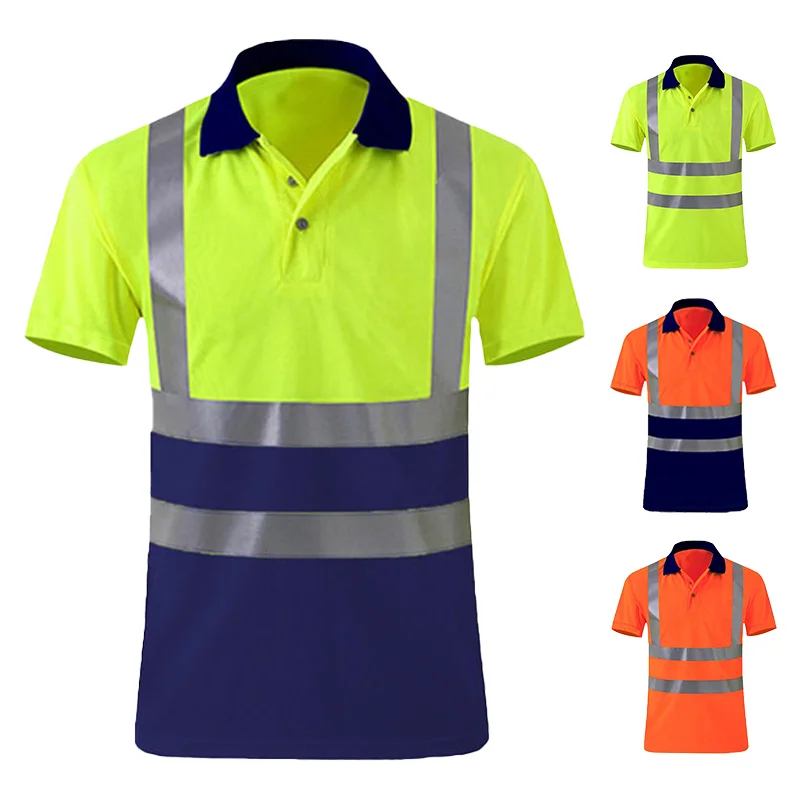 Ansi Class 3 Short Sleeve Industrial Work Clothes Custom Hi Vis Reflective Workwear Uniform High Visibility Safety Polo Shirt
