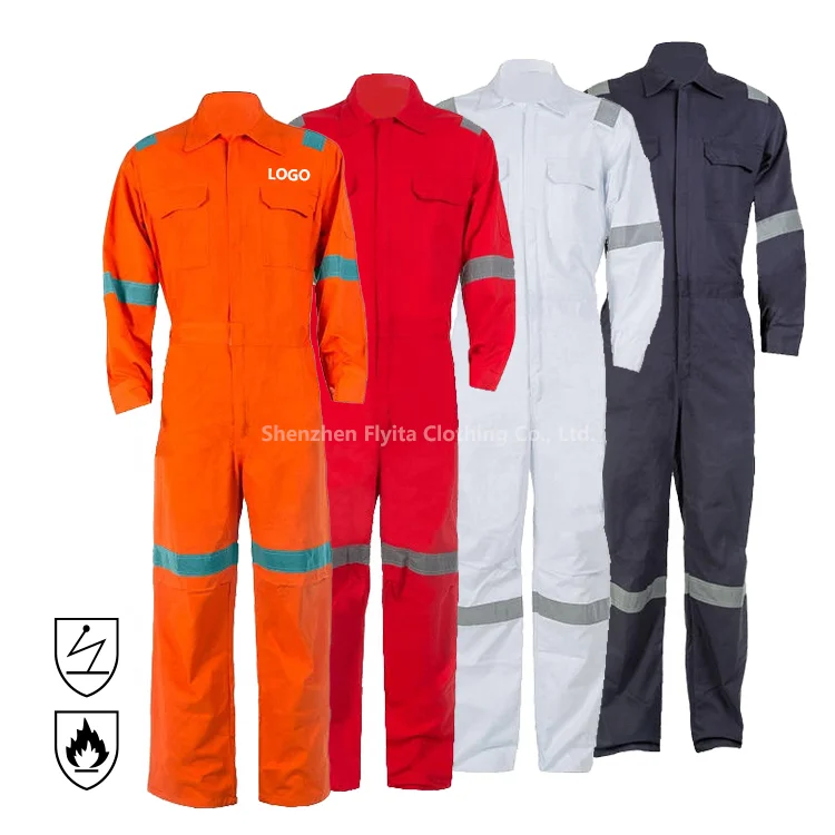 Hi Vis Cotton Aramid Fire Retardant Reflective Safety Overall Custom Workwear Worker Protective Clothing FRC FR Work Coverall