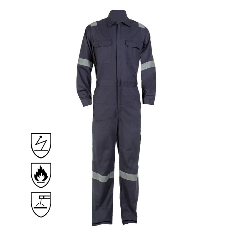 OEM Manufacturer Men Overalls Uniform FR Workwear 2 Chest Pocket Aramid Fire Retardent Mechanics Material FRC Oil Field Coverall