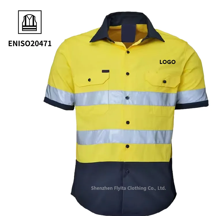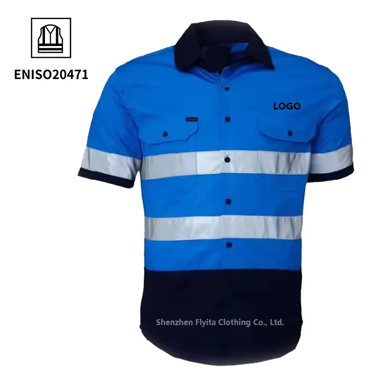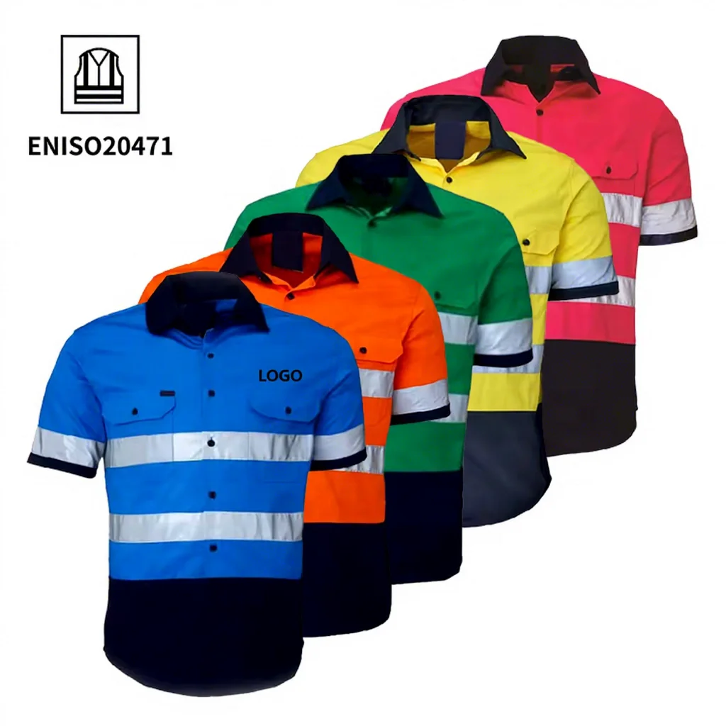 EN20471 Hi Vis Workwear Cotton Polyester Industrial Construction Uniform High Visibility Reflective Safety Clothing Worker Shirt