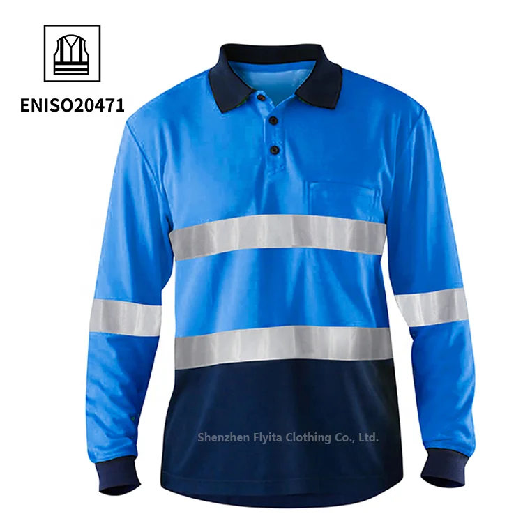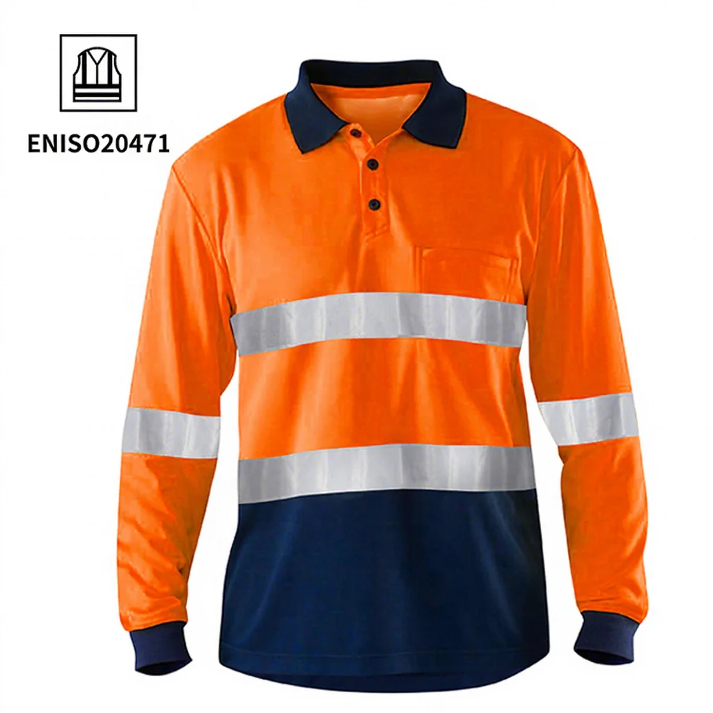 OEM Quick Dry Industrial Mining Construction Hi Vis Roadway Night Reflective Clothing Long Sleeve Safety Work Polo Tee Shirt