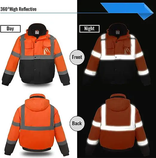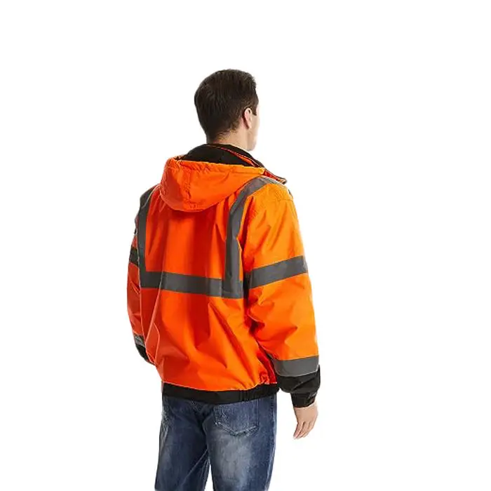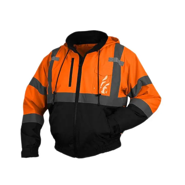 Class 3 100% Polyester Industrial Construction Hi Vis Workwear Road Bomber Safety Reflective Worker Coat Winter Work Jacket