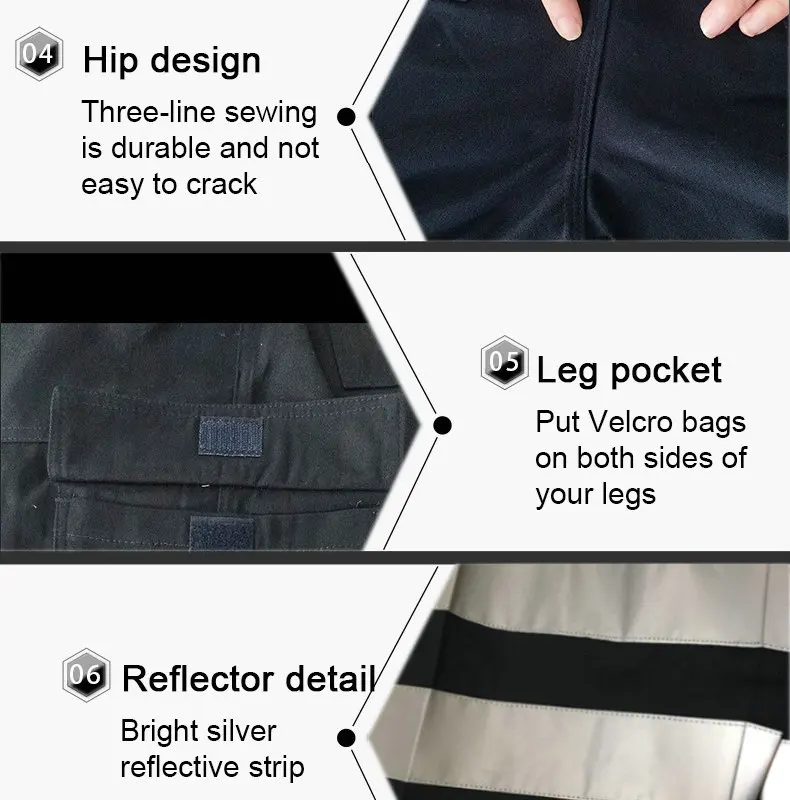 Fashion Classic Reflective Tapes Breathable 100% Cotton Twill Unisex Cargo Industrial Work Pants for Outdoor Work