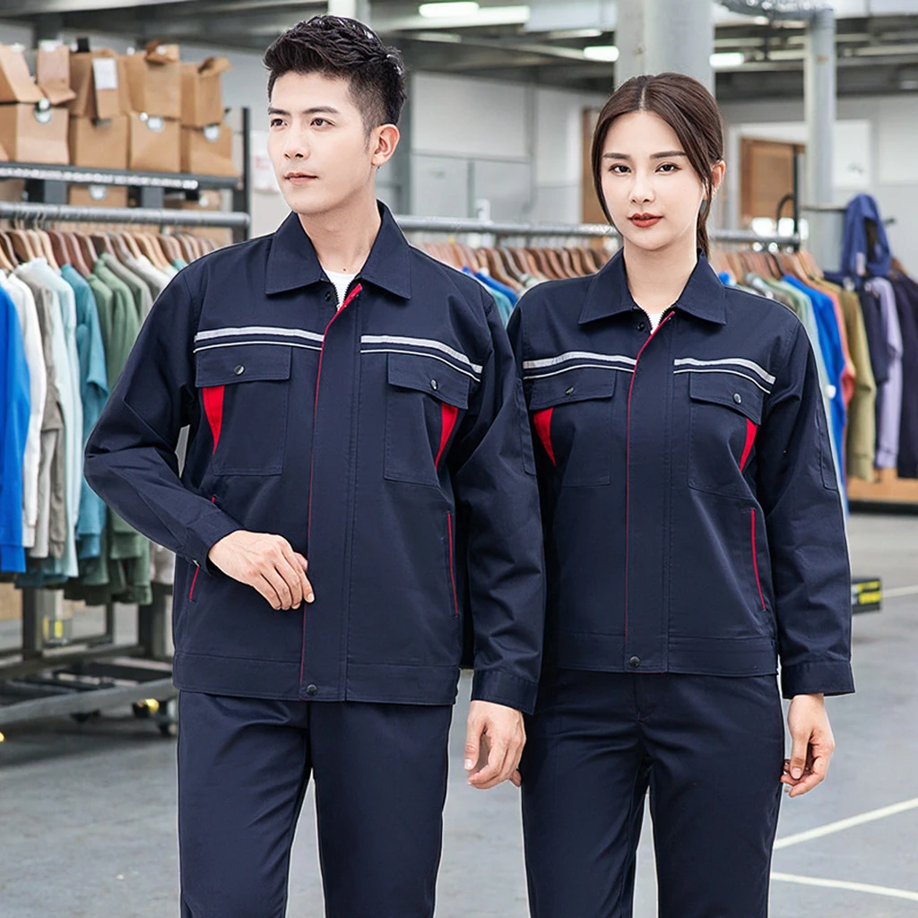 Breathable Cotton Overalls for Construction Spring Fall Wear Resistant Engineer Work Clothes with Reflective Strips Unisex