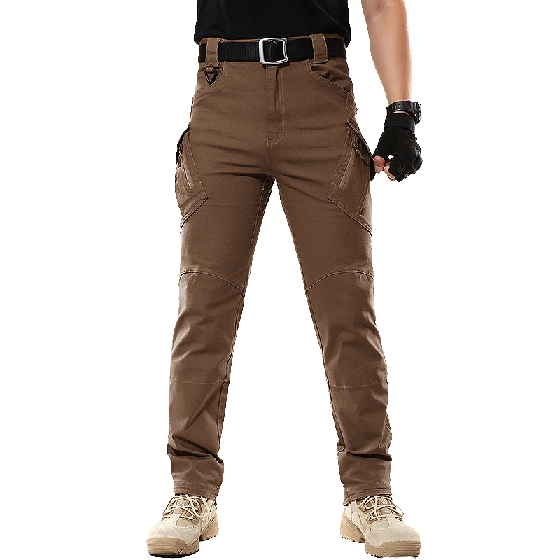 Men's Casual Style Tactical Cargo Pants Cotton Spandex Multi-Pockets Mid Pleated Plain Dyed Wholesale Canvas Straight Pattern
