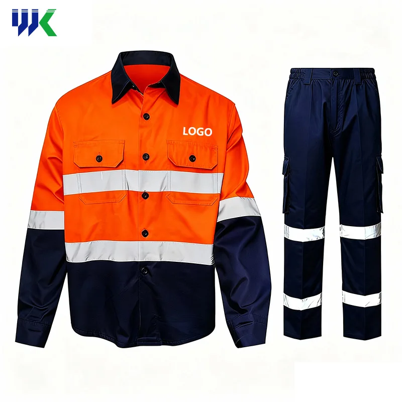 High Light Reflective Breathable Cotton Work Shirts and Suits for Construction Wear Resistant Work Uniforms