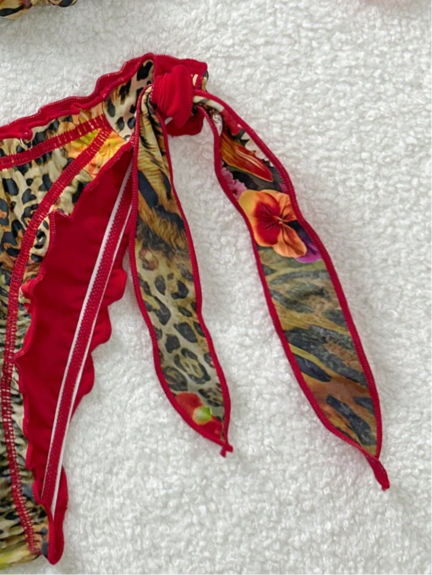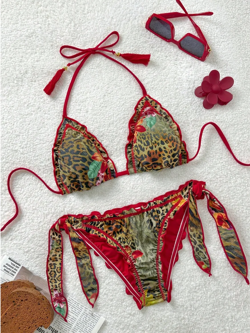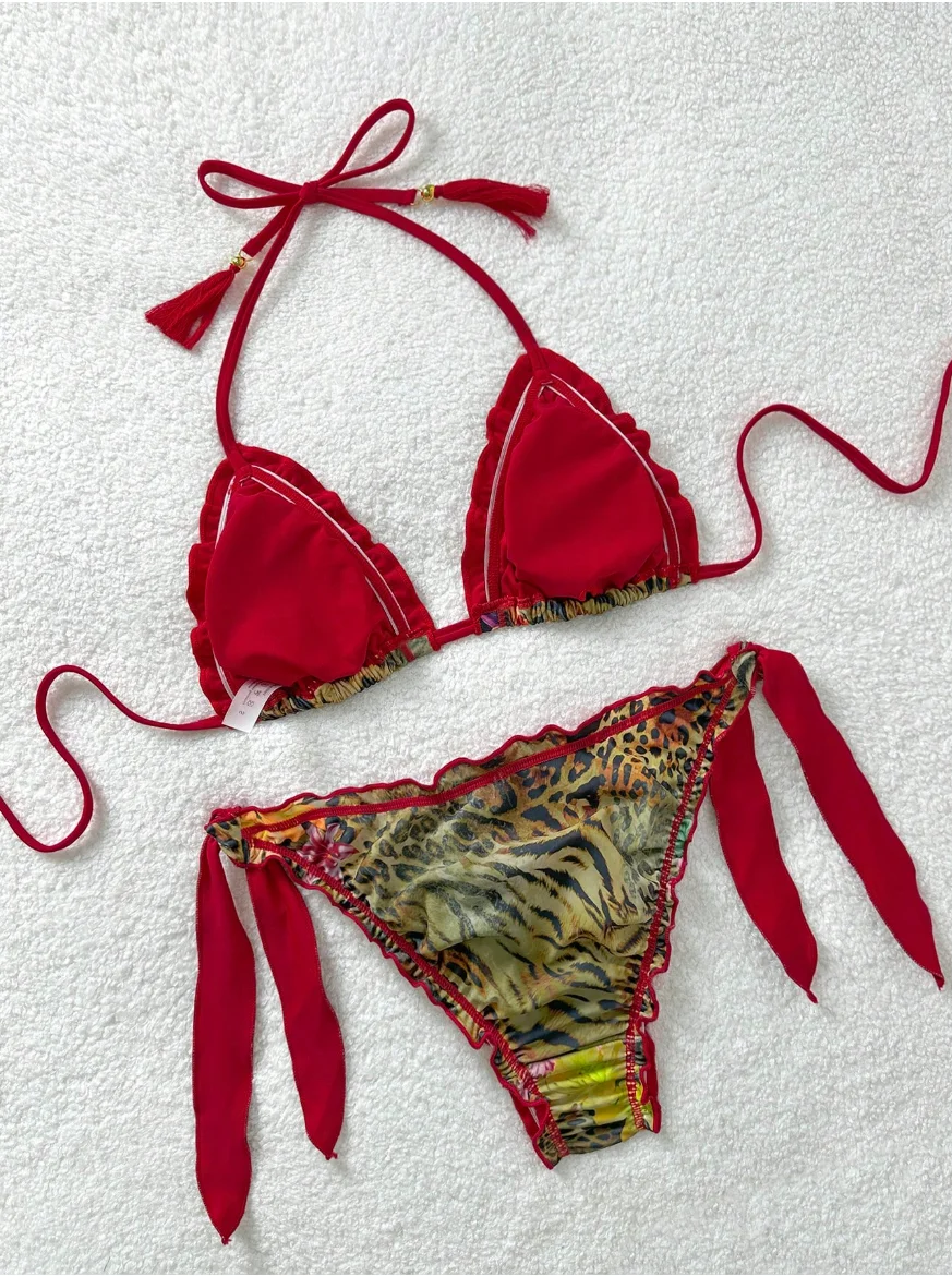 MLY Ruffle Bikini Summer Two Piece Suit Sexy Swimwear Bandage Biquini Triangle Swimsuit Printed Bathsuit