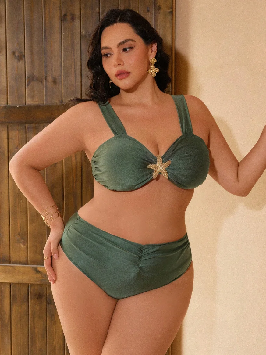 Swim 2026 Elegant Resort Wear Beach Party Solid Color Spaghetti Strap Women Summer Vacation Swimsuit Set Plus Size
