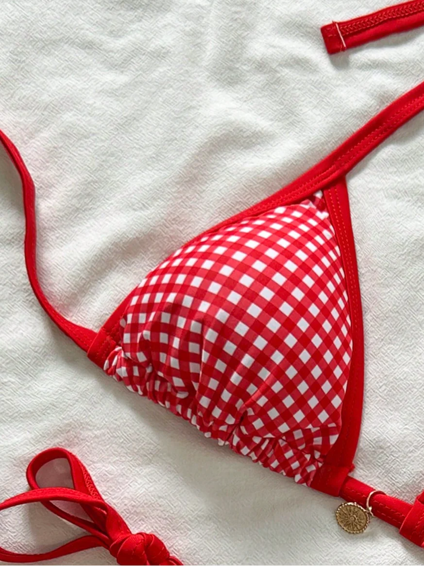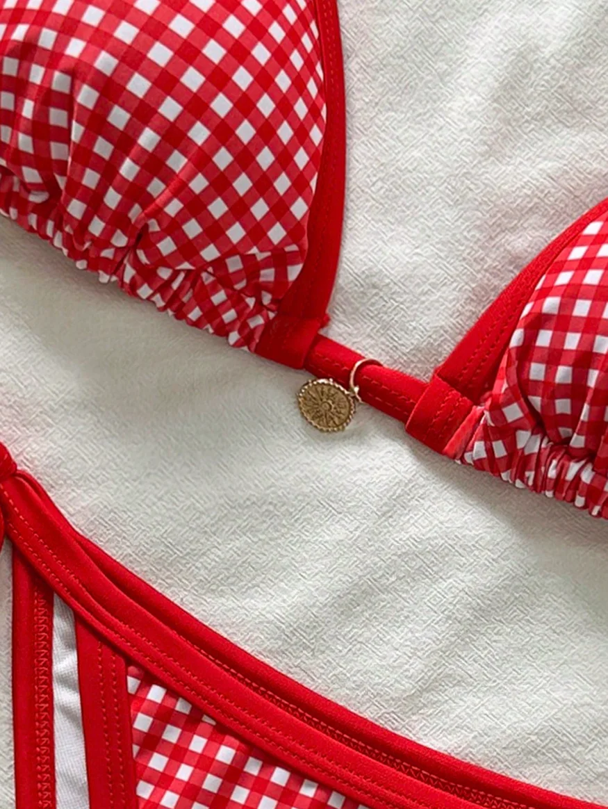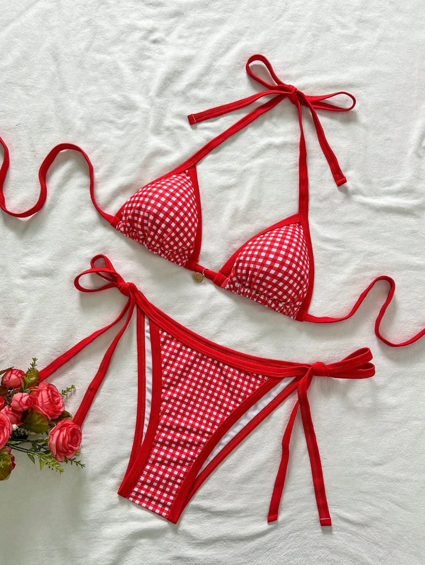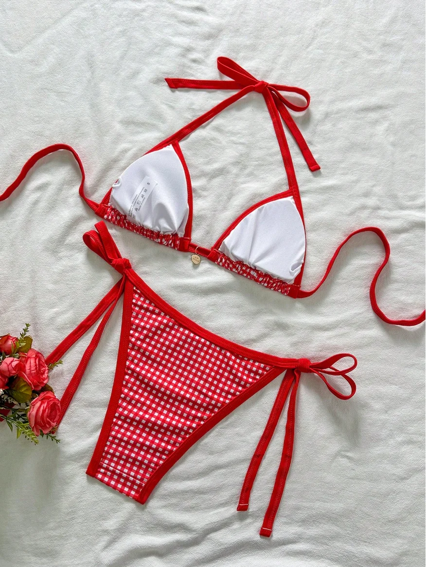 MLY Ruffle Bikini Summer Two Piece Suit Sexy Swimwear Bandage Biquini Triangle Swimsuit Printed Bathsuit