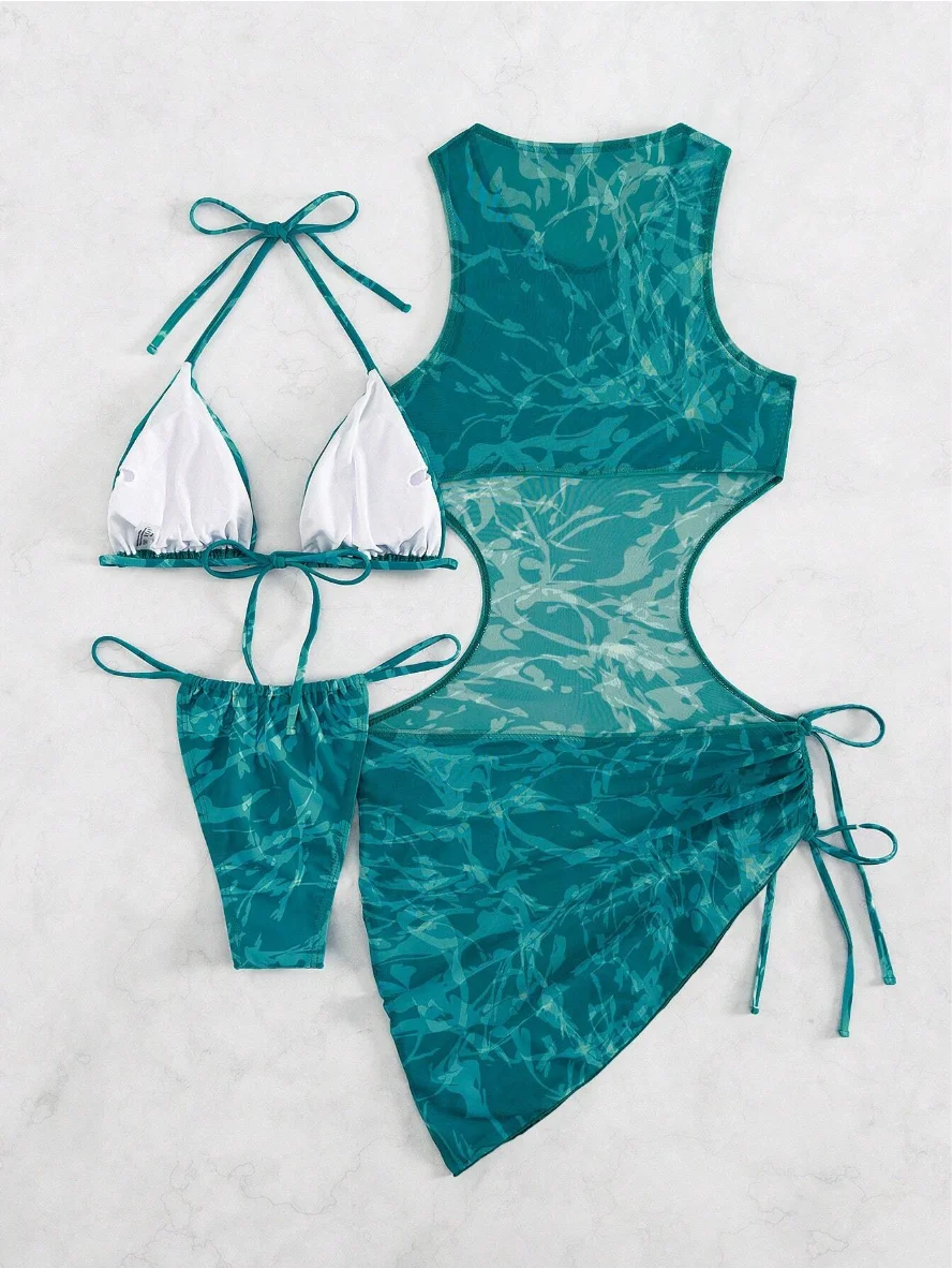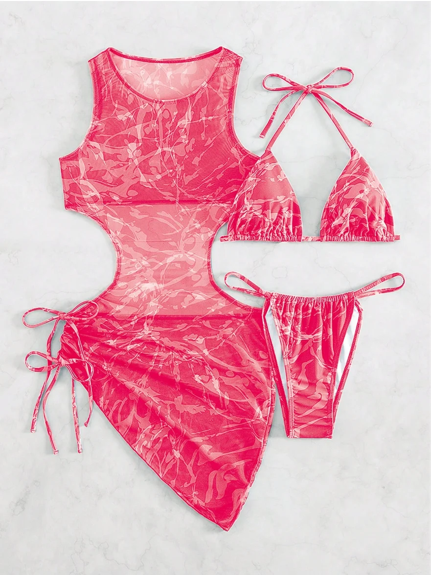 MLY Ruffle Bikini Summer Two Piece Suit Sexy Swimwear Bandage Biquini Triangle Swimsuit Printed Bathsuit