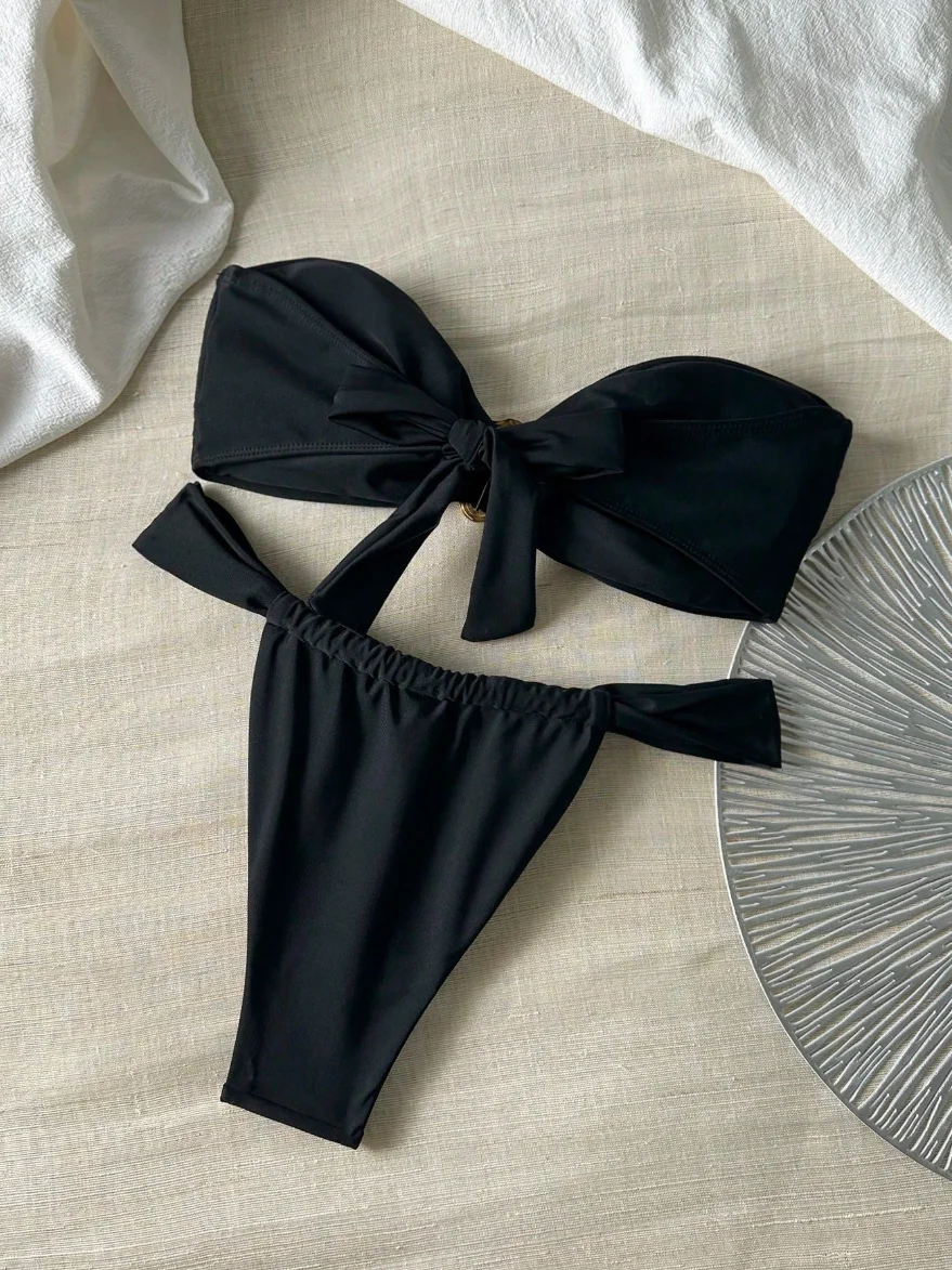 MLY Best Selling Solid Black and White Women Ladies Beachwear Custom Swimwear Sexy Micro Bikini Bathing Suits