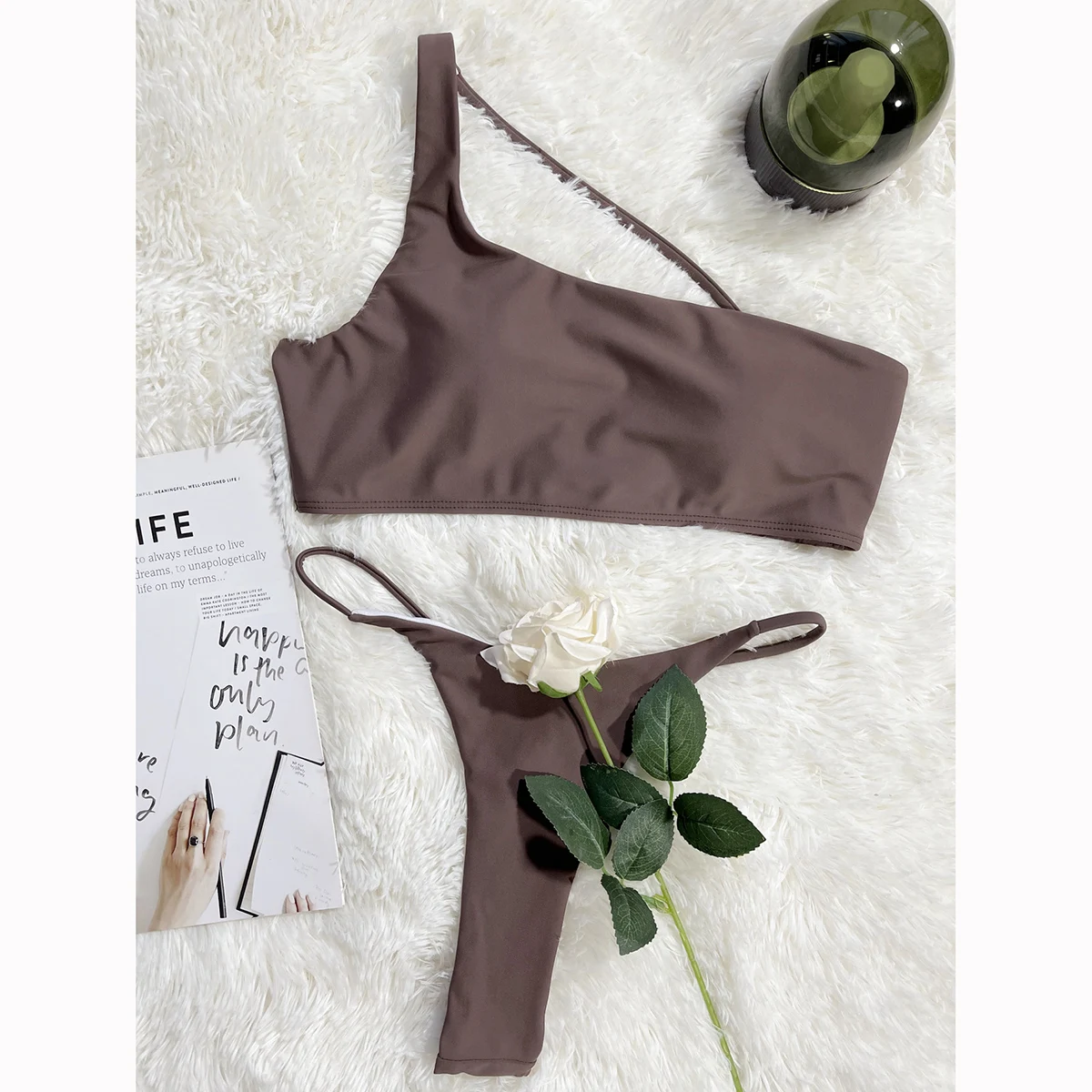 Micro Bikinis Thong Bikini Set One Should er Sexy Women Swimsuit Solid Female Swimwear Young Girl Sexy Bikini Hot