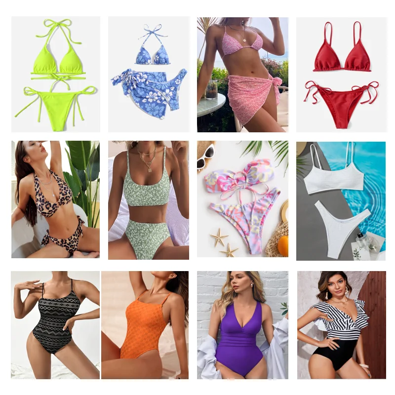 2023 New Custom Solid Color Bikini Swimwear Sexy Triangle Thong Split String Bikini Beachwear Swimwear