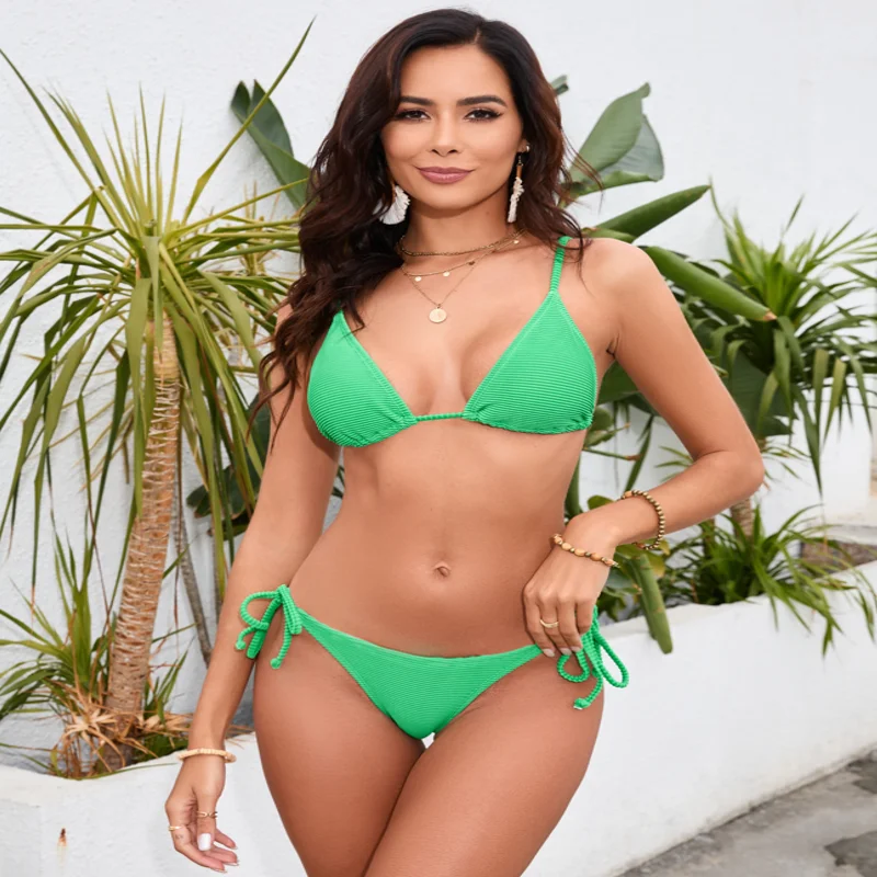 Women's Green Triangle String Bikini Set - Sexy Tie Side Swimsuit for Beach & Pool