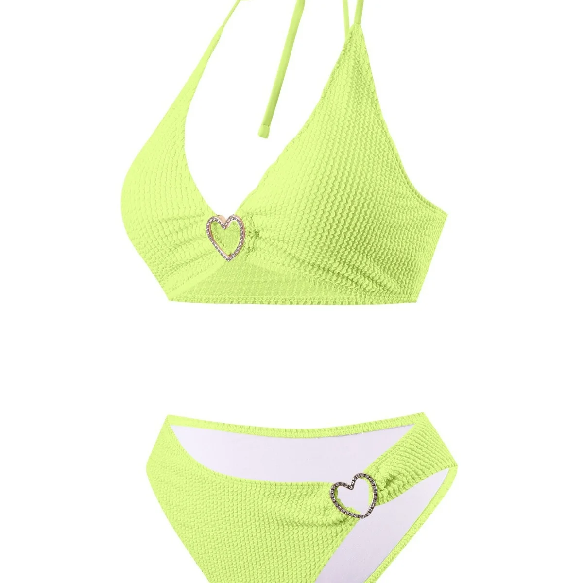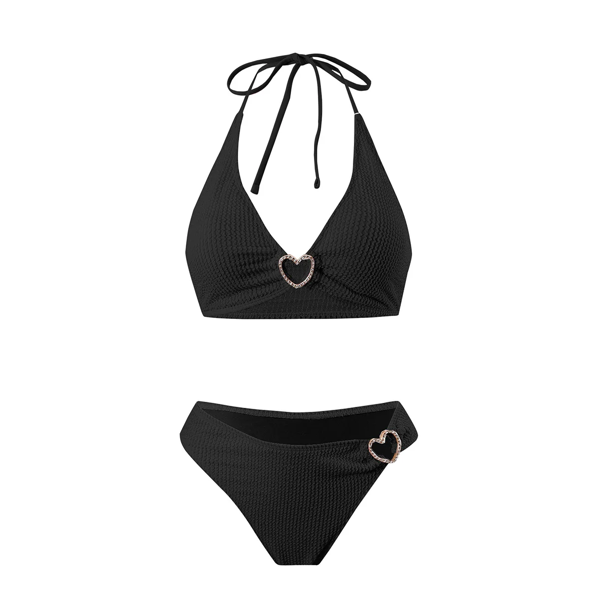 2026 European American Bikini Women's Hot Spring Bath Halter Neck Swimsuit Solid Color Quick Dry Plus Size