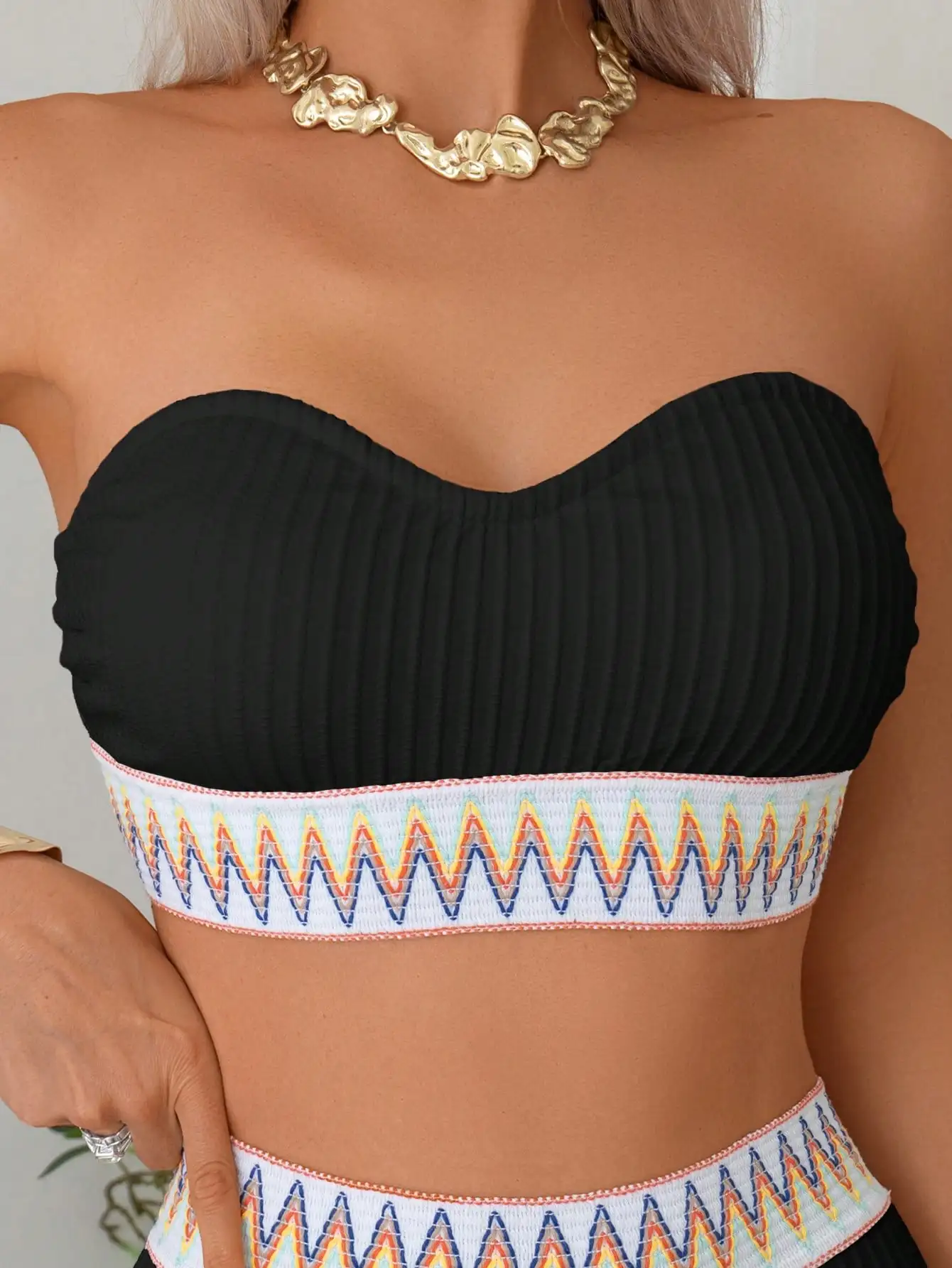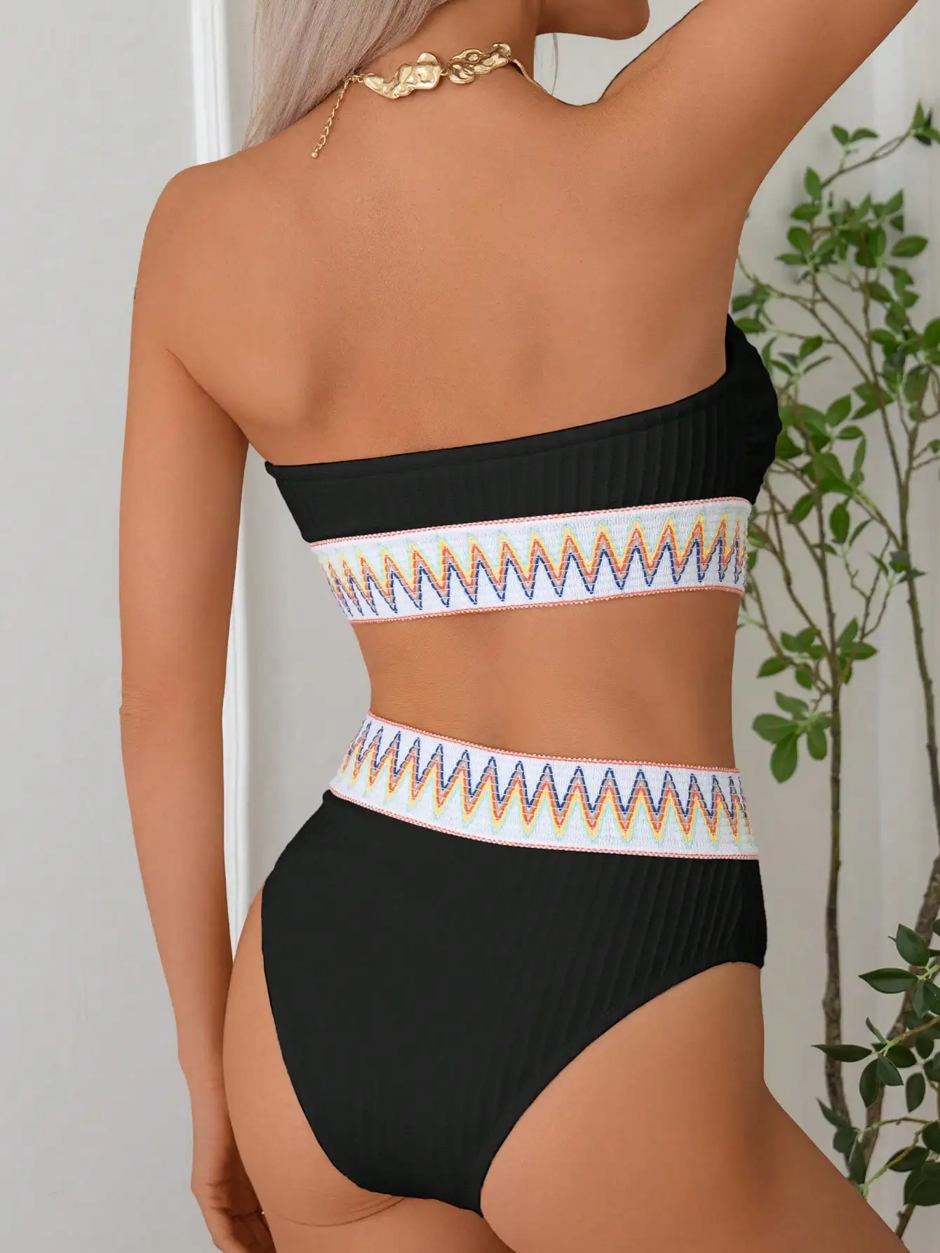Women's Strapless High-Waist Bikini Set Contrast Color Trim Custom Logo Ruched Cut Decor XS-XL Swimwear Beachwear for Bathing