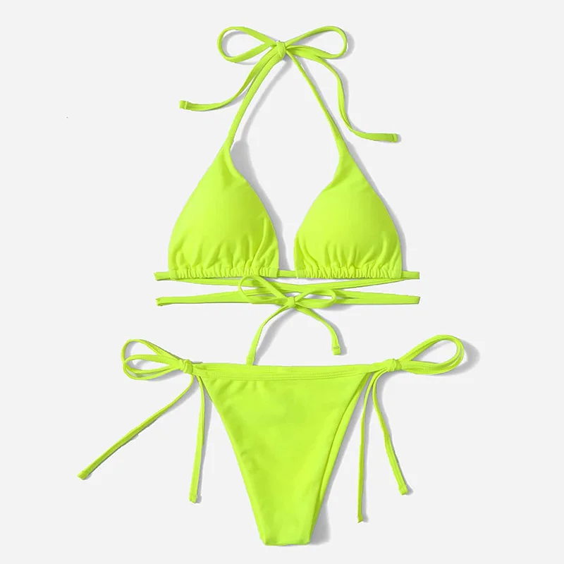 MLY Ruffle Bikini Summer Two Piece Suit Sexy Swimwear Bandage Biquini Triangle Swimsuit Printed Bathsuit