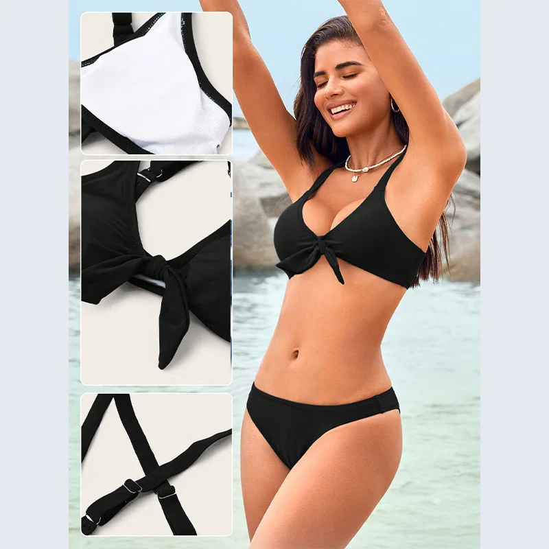 2023 Women Sexy Black Bikini Hollow Split Two Pieces Swimsuit Set Swimwear Summer Women Sexy Bikini
