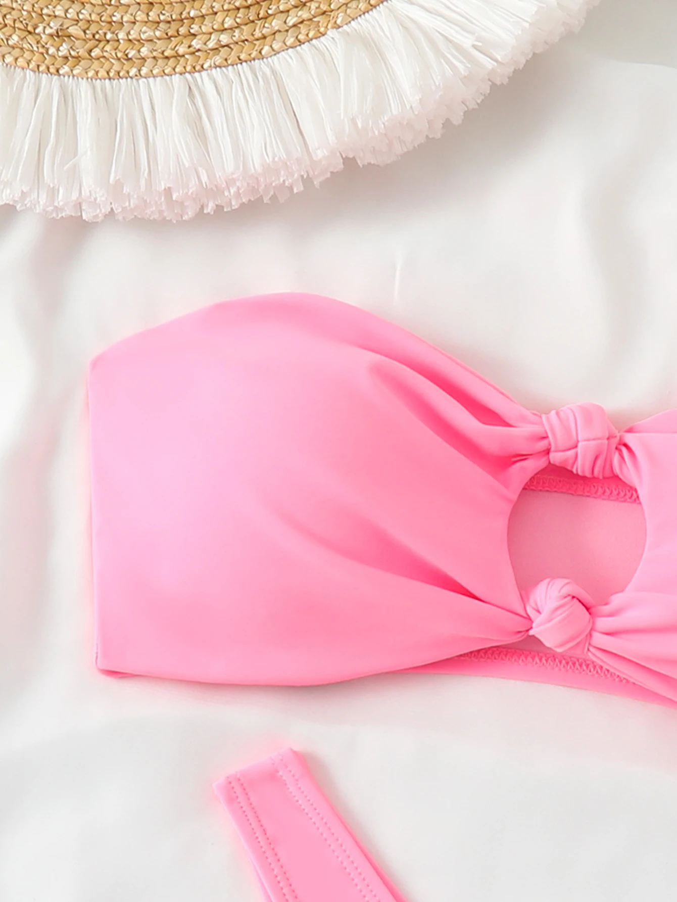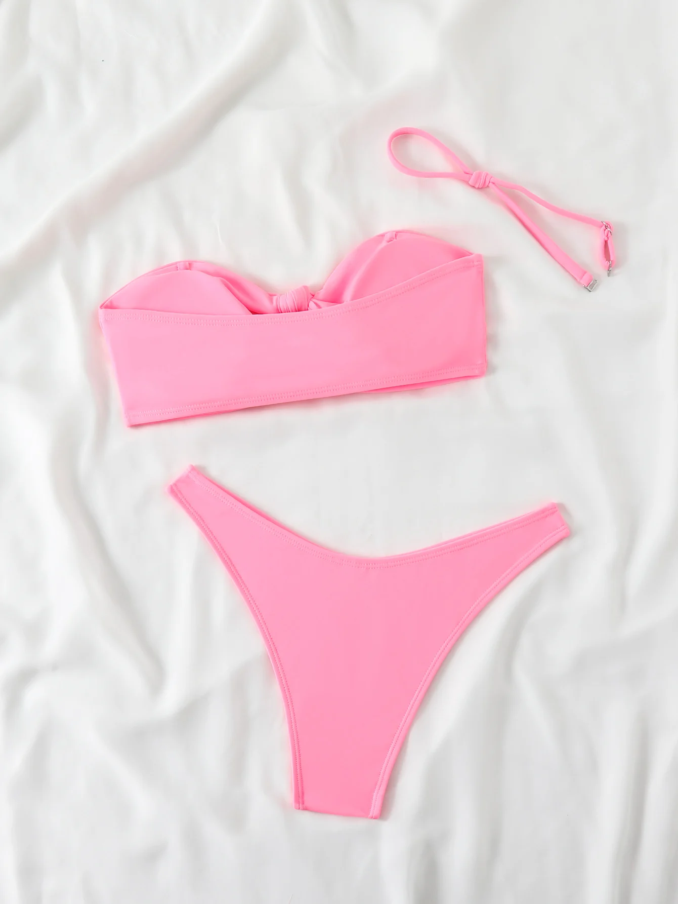Sexy Twist 2 Piece Women Swimming Suit Costumes Pink Swimwear High Cut Swimsuit Bandeau Bikinis Set for Teen Girls