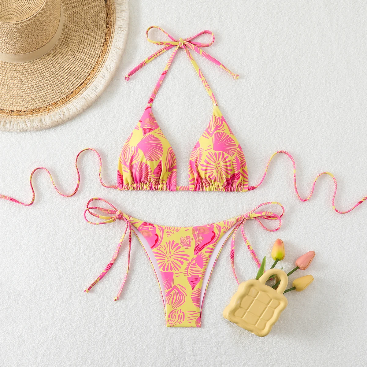 MLY Ruffle Bikini Summer Two Piece Suit Sexy Swimwear Bandage Biquini Triangle Swimsuit Printed Bathsuit