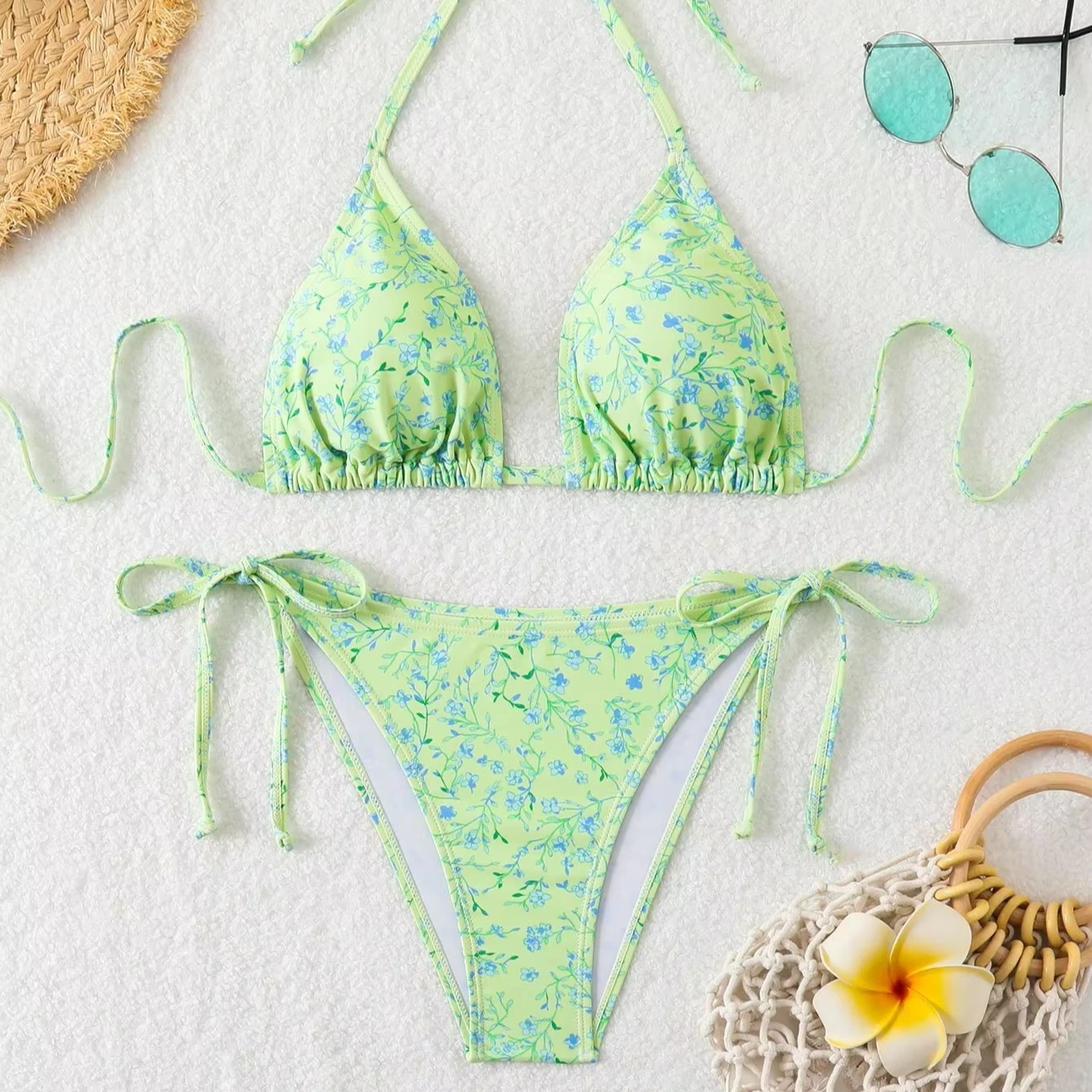 MLY Ruffle Bikini Summer Two Piece Suit Sexy Swimwear Bandage Biquini Triangle Swimsuit Printed Bathsuit
