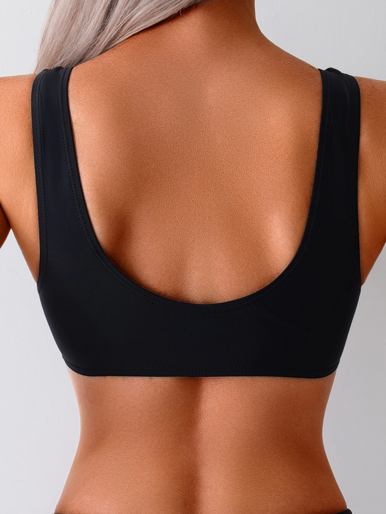 2026 New Arrival Scoop Neck Drawstring Wireless Bikini Spandex Nylon Solid Beach Holiday Swimwear