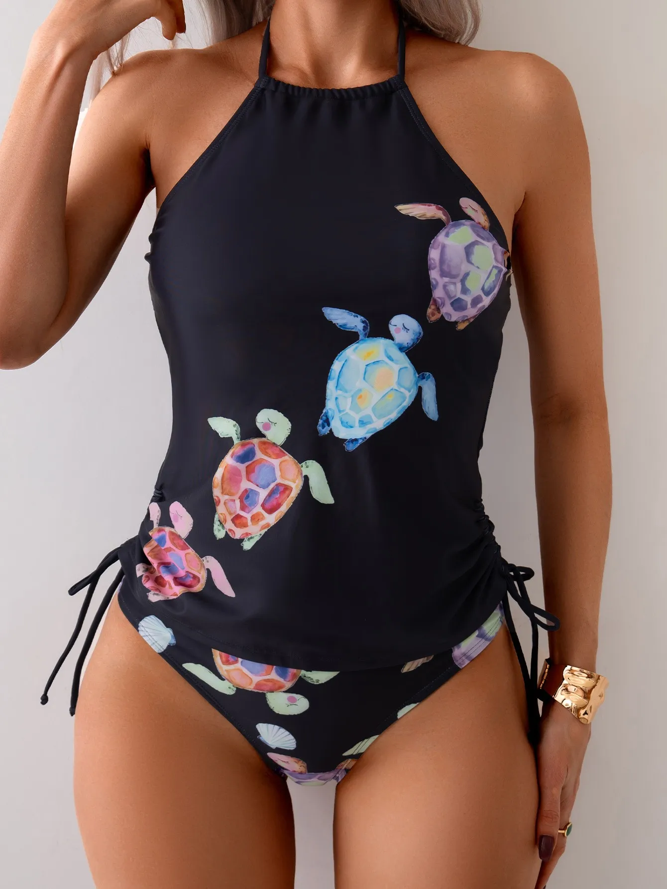 Custom New Design Plus Size Sexy Print Two Piece Bikini Beachwear Sleeveless Swimsuit Women Tummy Control Swimwear