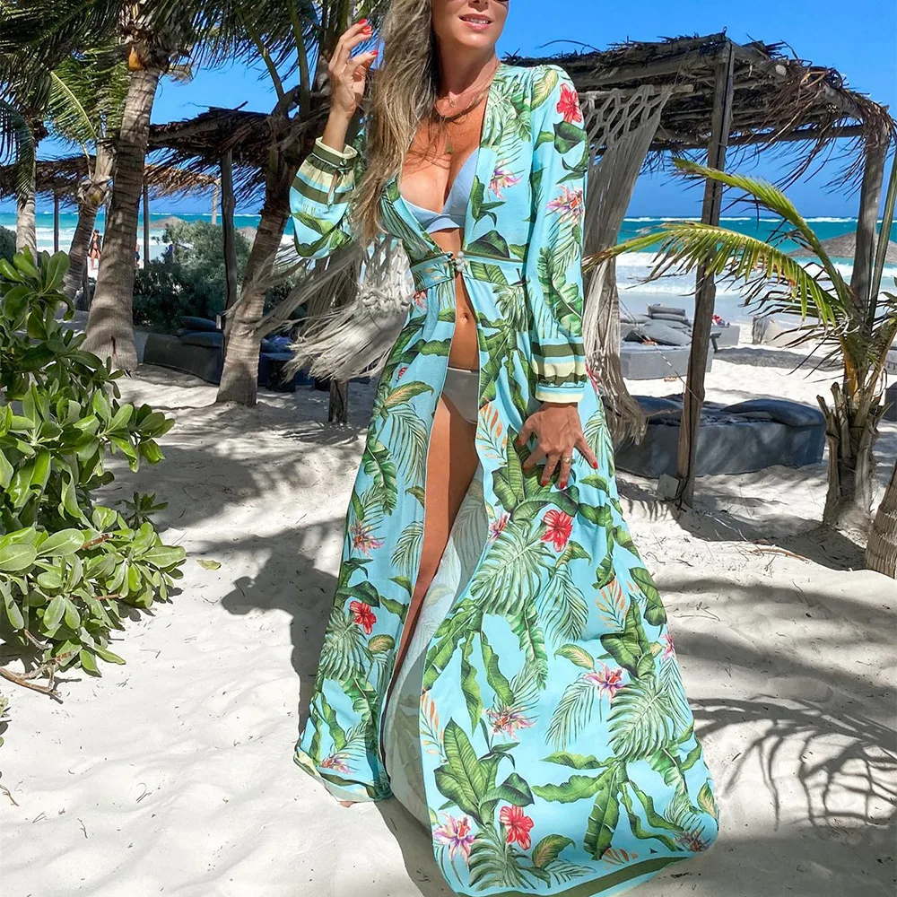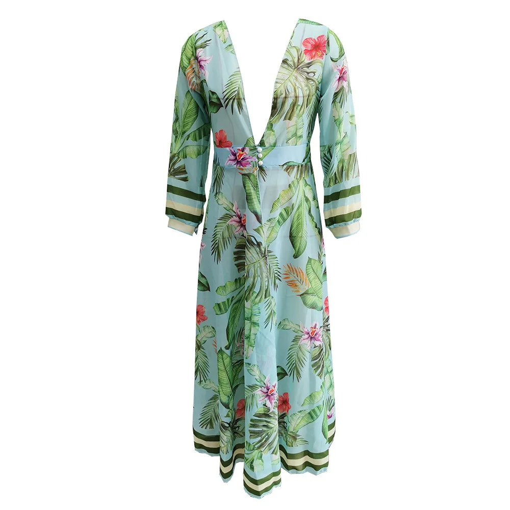 JSN High Quality Beachwear Swimwear Cover up Women's Cardigan Long Sleeved Printed Bikini Robe