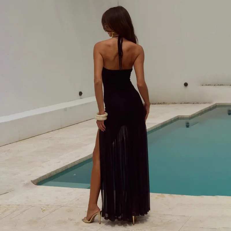 JSN 2026 New Customized One Piece High Cut Swimdress Women's Solid Hollow Out Beading Sexy Backless Swimsuit Swimwear Beachwear