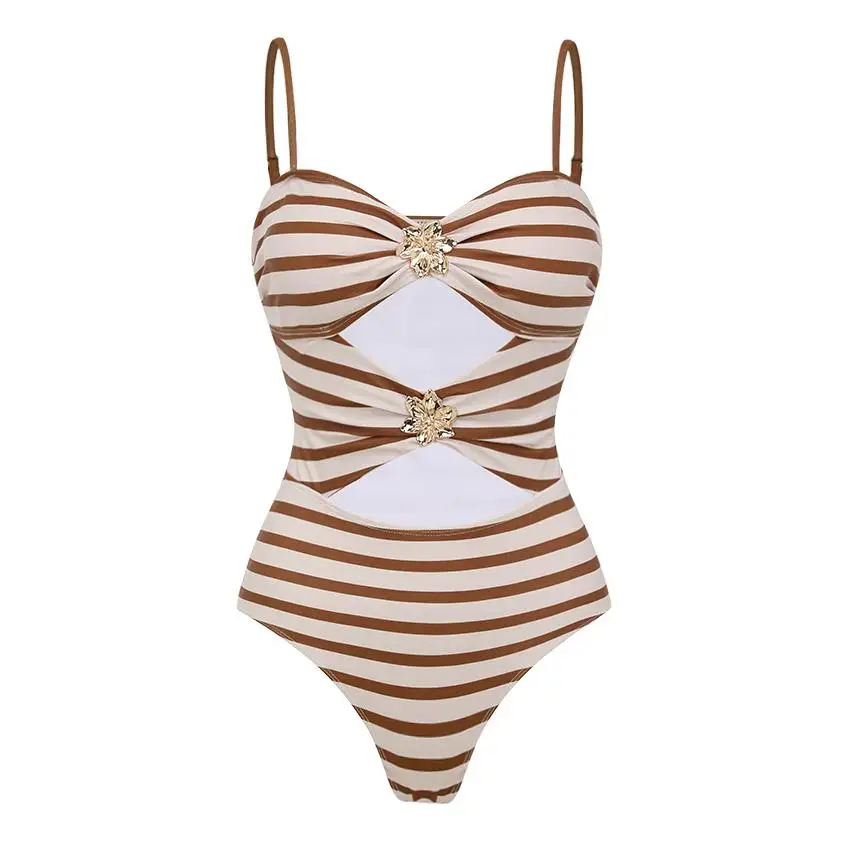 MLY Factory Wholesale Bikini Custom Sexy Bodysuit Jumpsuit Beachwear Backless Striped Print One Piece Swimwear