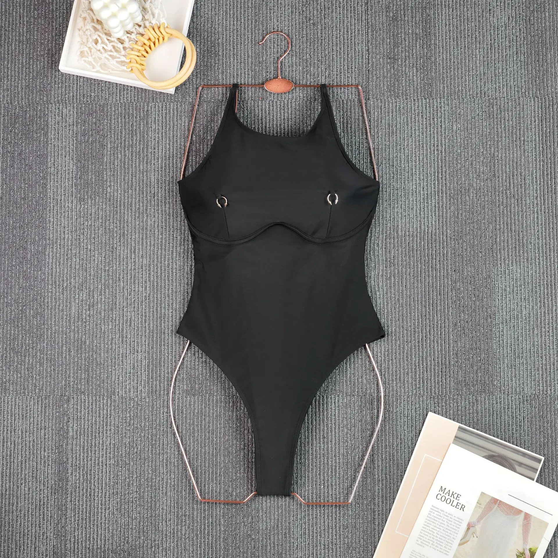 JSN 2026 Customized Women's New Round Neck One Piece Bikini Sexy High Cut Backless Swimsuit for Ladies Beach Swimwear