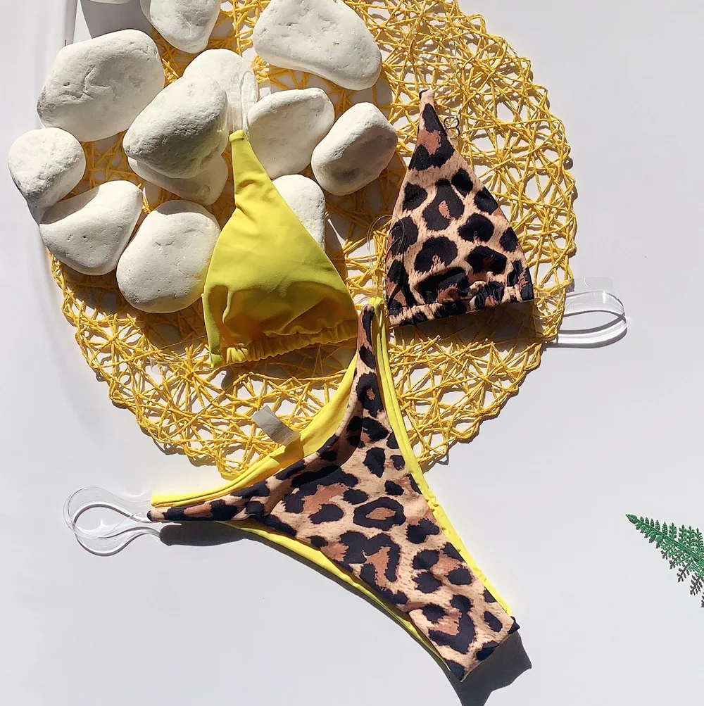 JSN Hot Selling New Leopard Print Solid Color Stitching Bikini Women's Two-piece Swimsuit