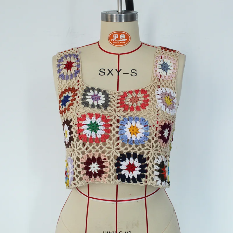 JSN9202013 Hand Hook Floral Block Knitted Suspenders for Women Sexy Fashion Seaside Swimwear Holiday Bikini Suspenders