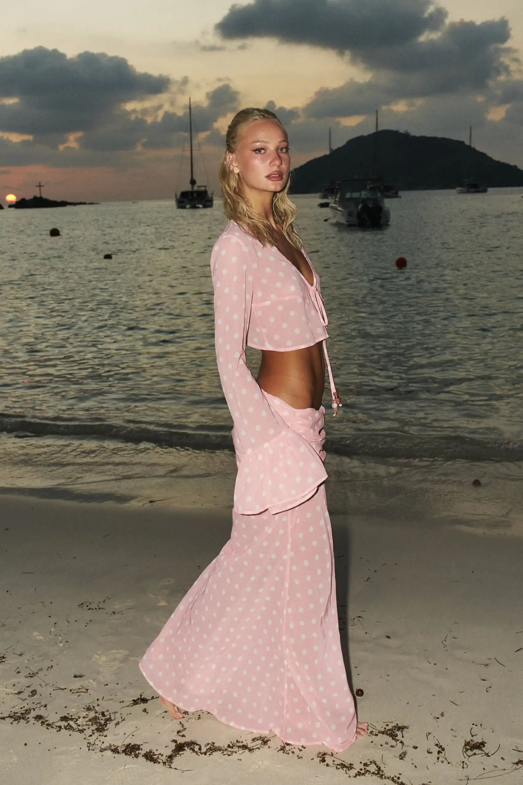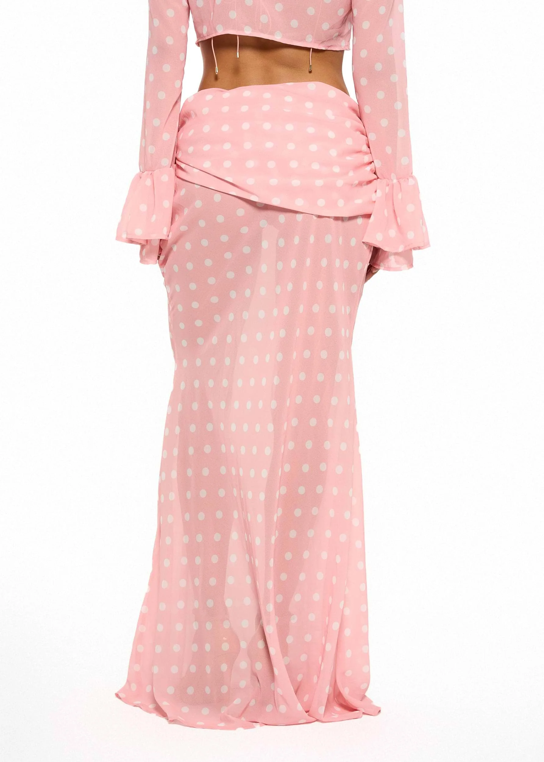 JSN 2026 Customized New Arrival Chiffon Polka Dot 4-Piece Bikini Set with Long Sleeves Cover-up Top and Slim-Fit Skirt for Women