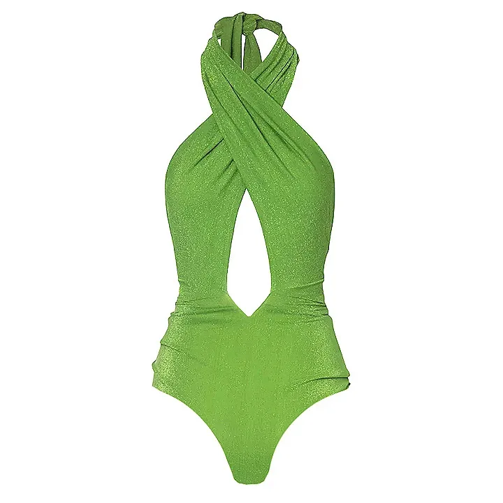 JSN 2026 Swimsuit Trend Sexy One Piece Shiny Women Swimwear Beachwear Bathing Suit Monokini Swimwear