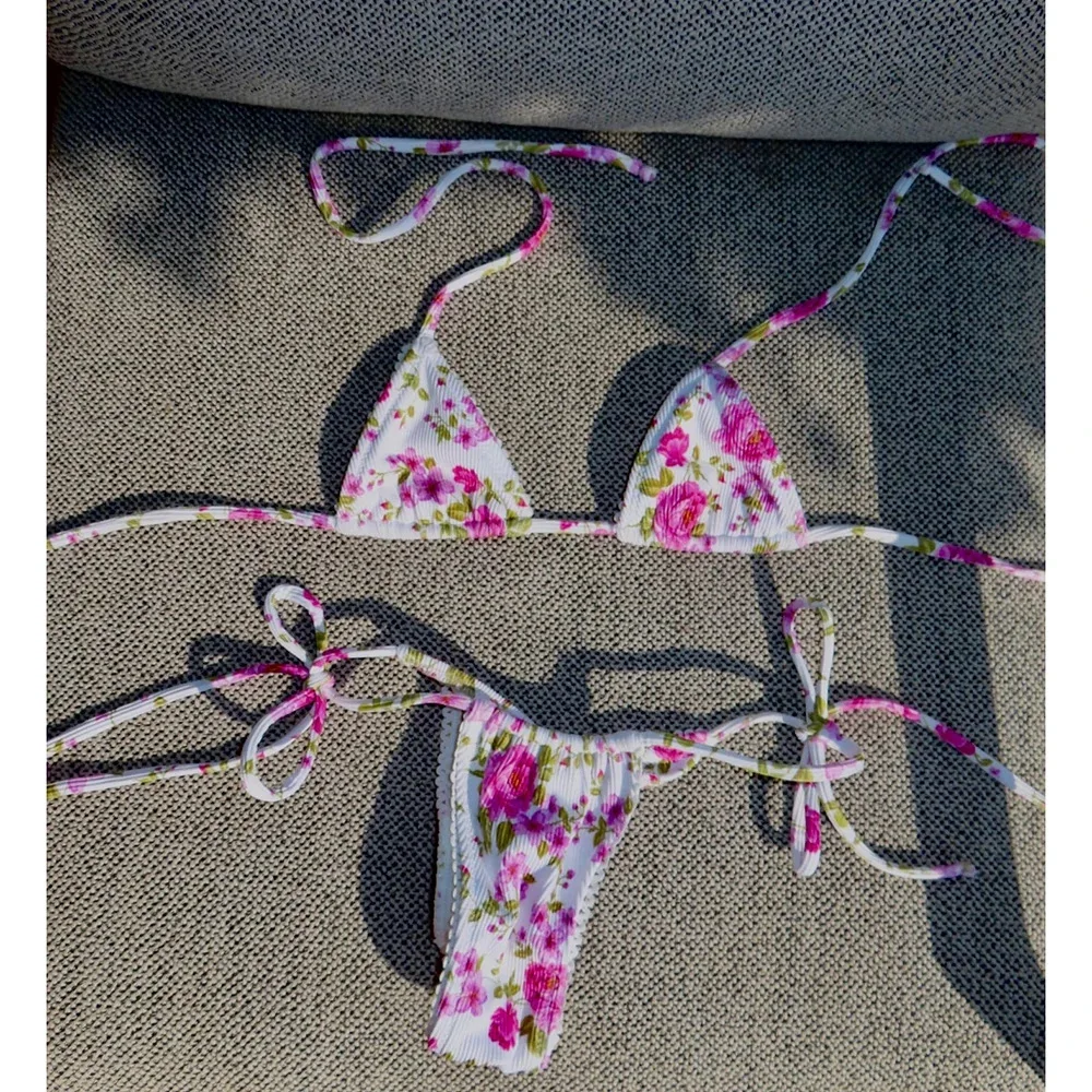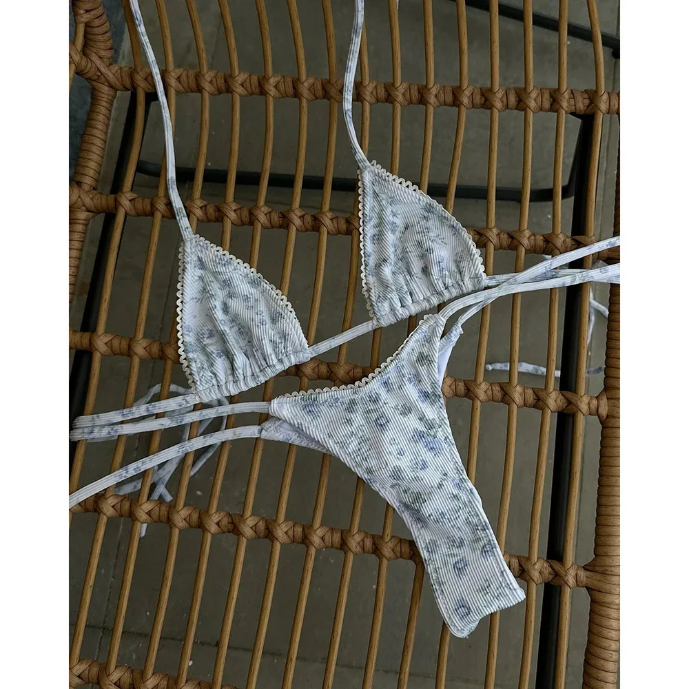 MLY Ruffle Bikini Summer Two Piece Suit Sexy Swimwear Bandage Biquini Triangle Swimsuit Printed Bathsuit