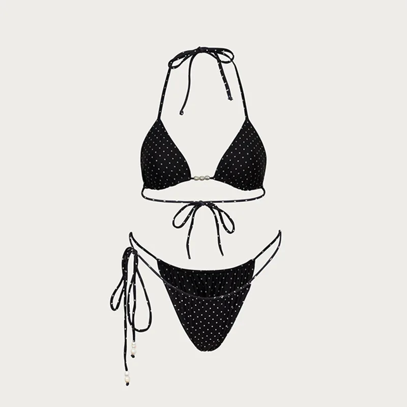 JSN 2026 New Design Fashionable Two Piece Set Bikini for Lady Women's Halter Backless Dot Swimsuit Beading Low Waist Swimwear