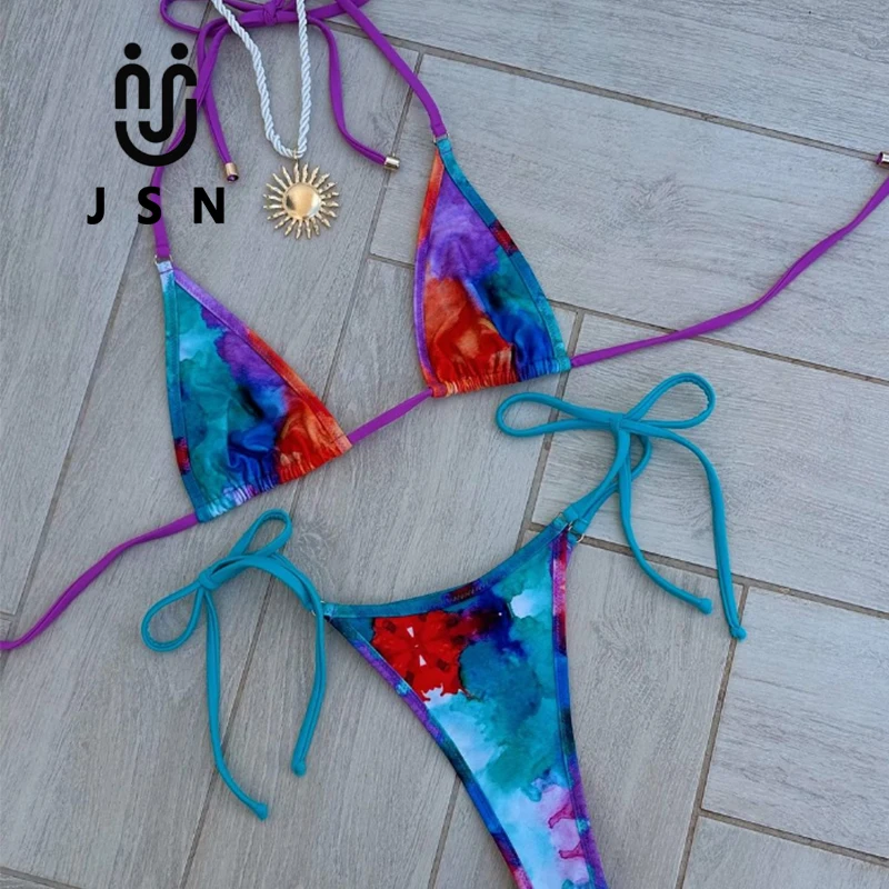 MLY Ruffle Bikini Summer Two Piece Suit Sexy Swimwear Bandage Biquini Triangle Swimsuit Printed Bathsuit
