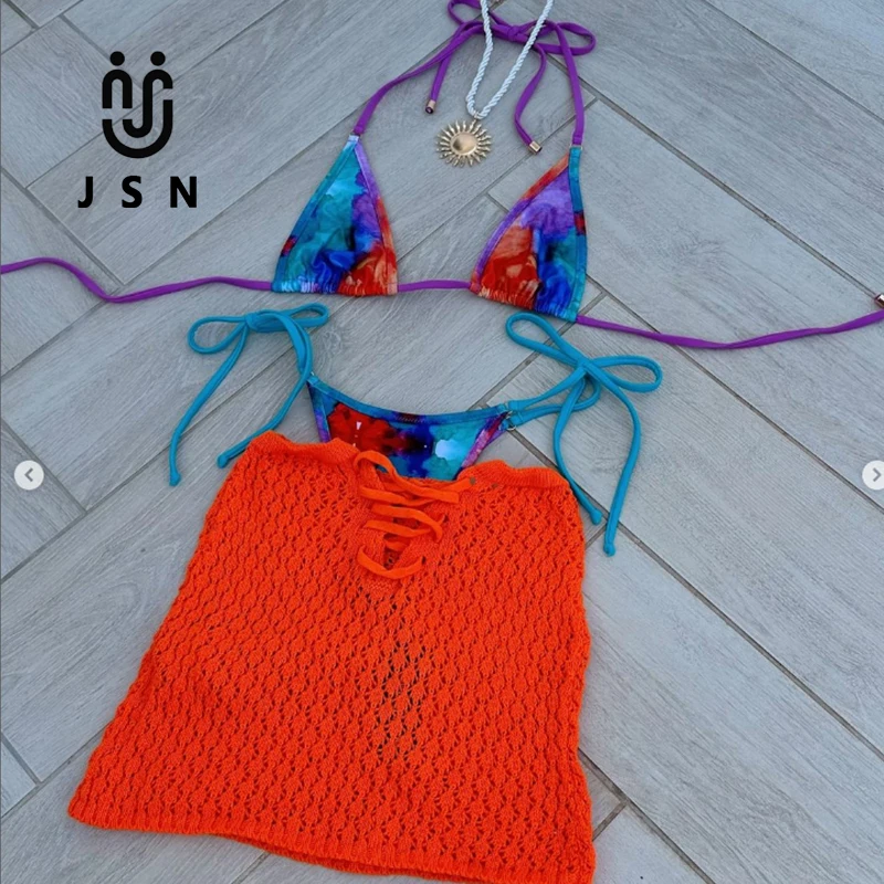 JSN High Quality Custom Logo Pink Bikinis Swimwear Color Fastness Seamless Print Sexy Swimwear