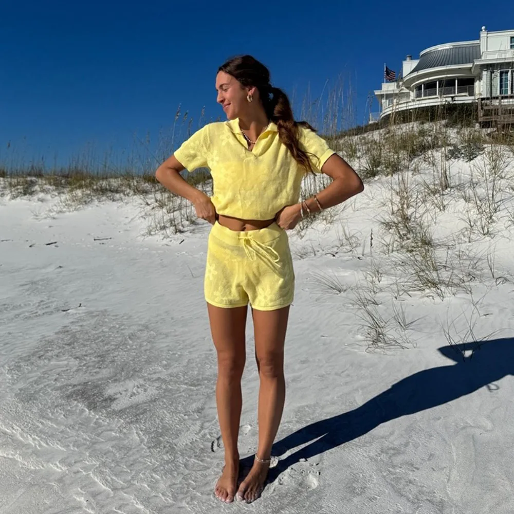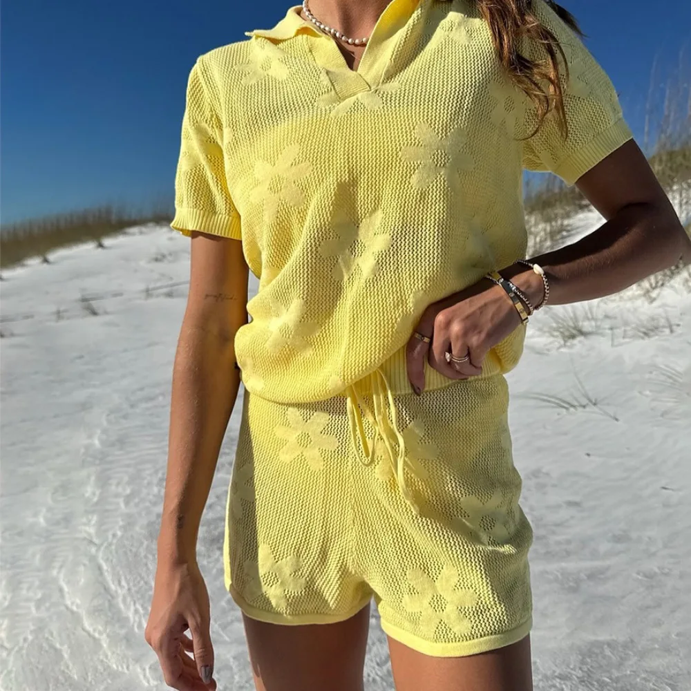 JSN 2026 Customized New Design Women's Beach Two Piece Swimwear with Shorts Casual Knitted Pullover Bikini Swimsuit Cover-up