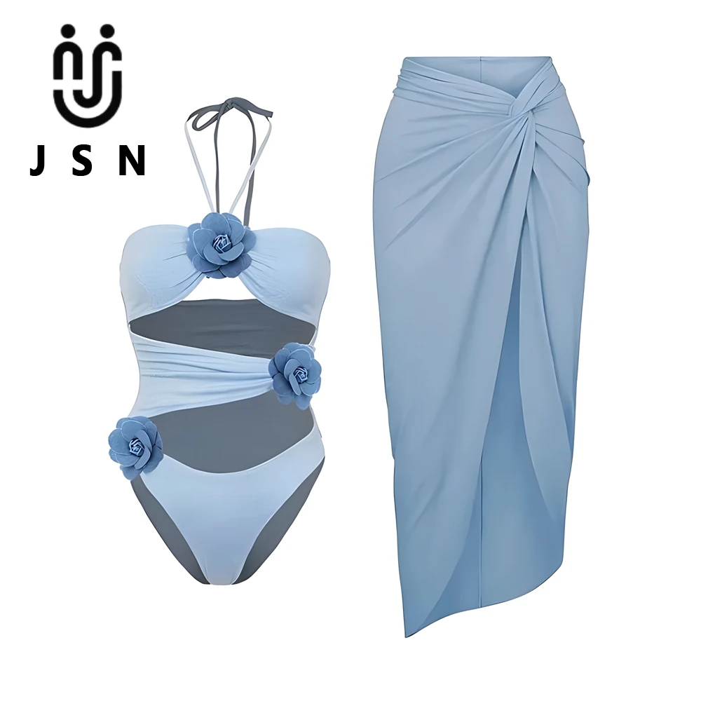 JSN 2023 New 3D Flower Popular Womens Swimwear Skirt Cover up Custom 2 Piece Bathing Suits Woman Color Fastness Sexy Swimsuits