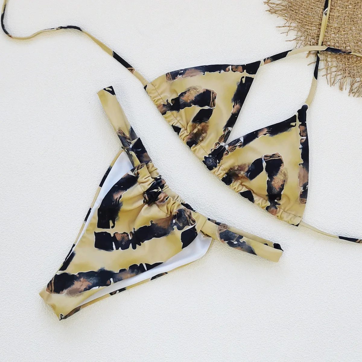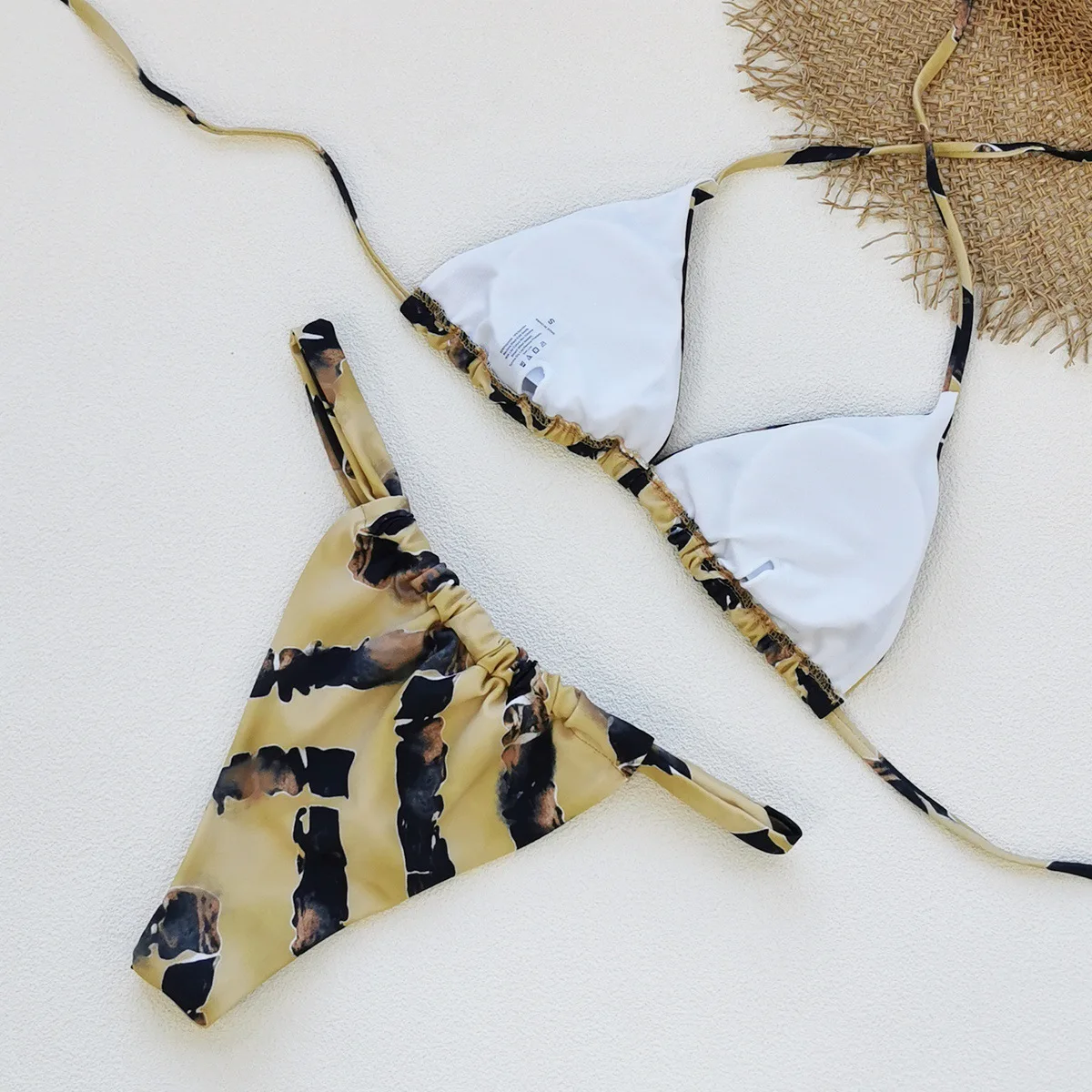 JSN 2026 Customized Retro Print Mini Two-Piece Bikini Sexy Backless Halter Triangle Fashionable Women's Thongs Bikini