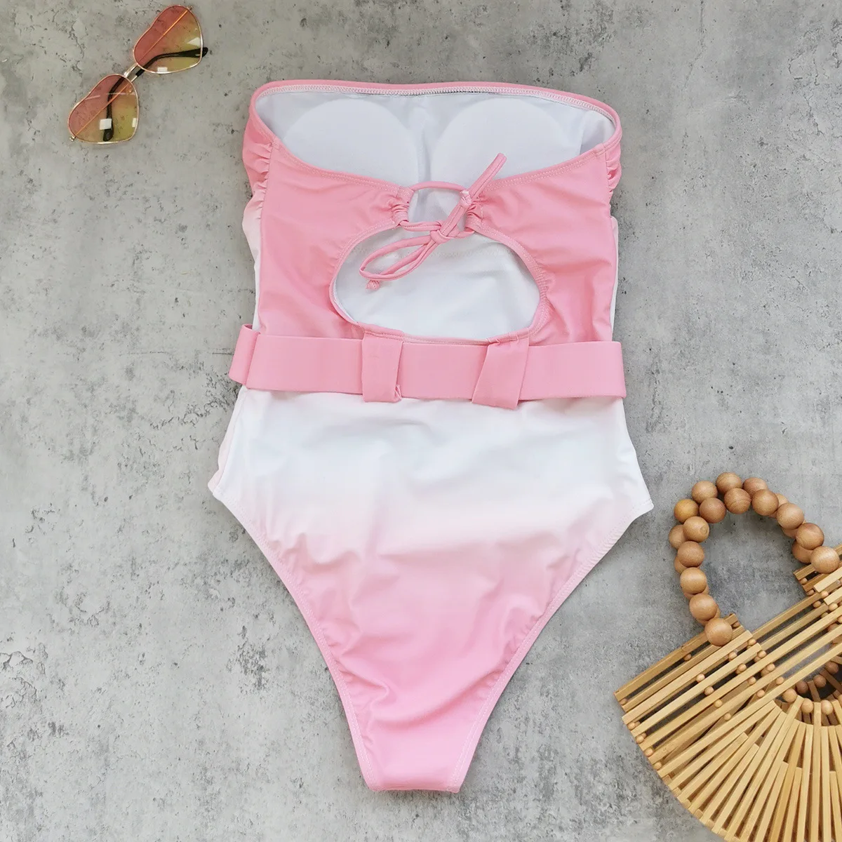 JSN 2026 Customized Gradient Color Bandeau One Piece Bikini for Lady Women's Sexy Backless High Cut Swimsuit Swimwear&beachwear