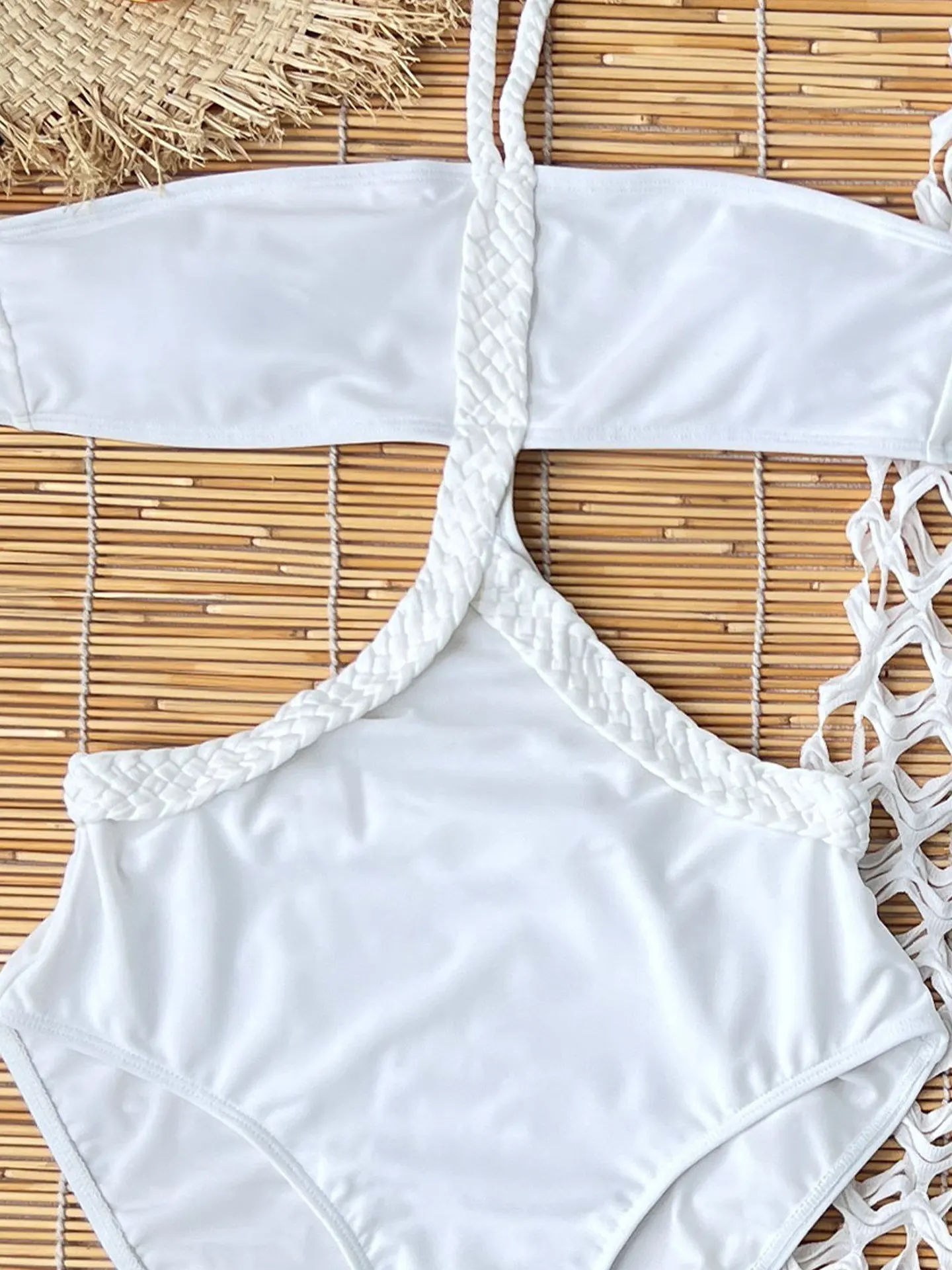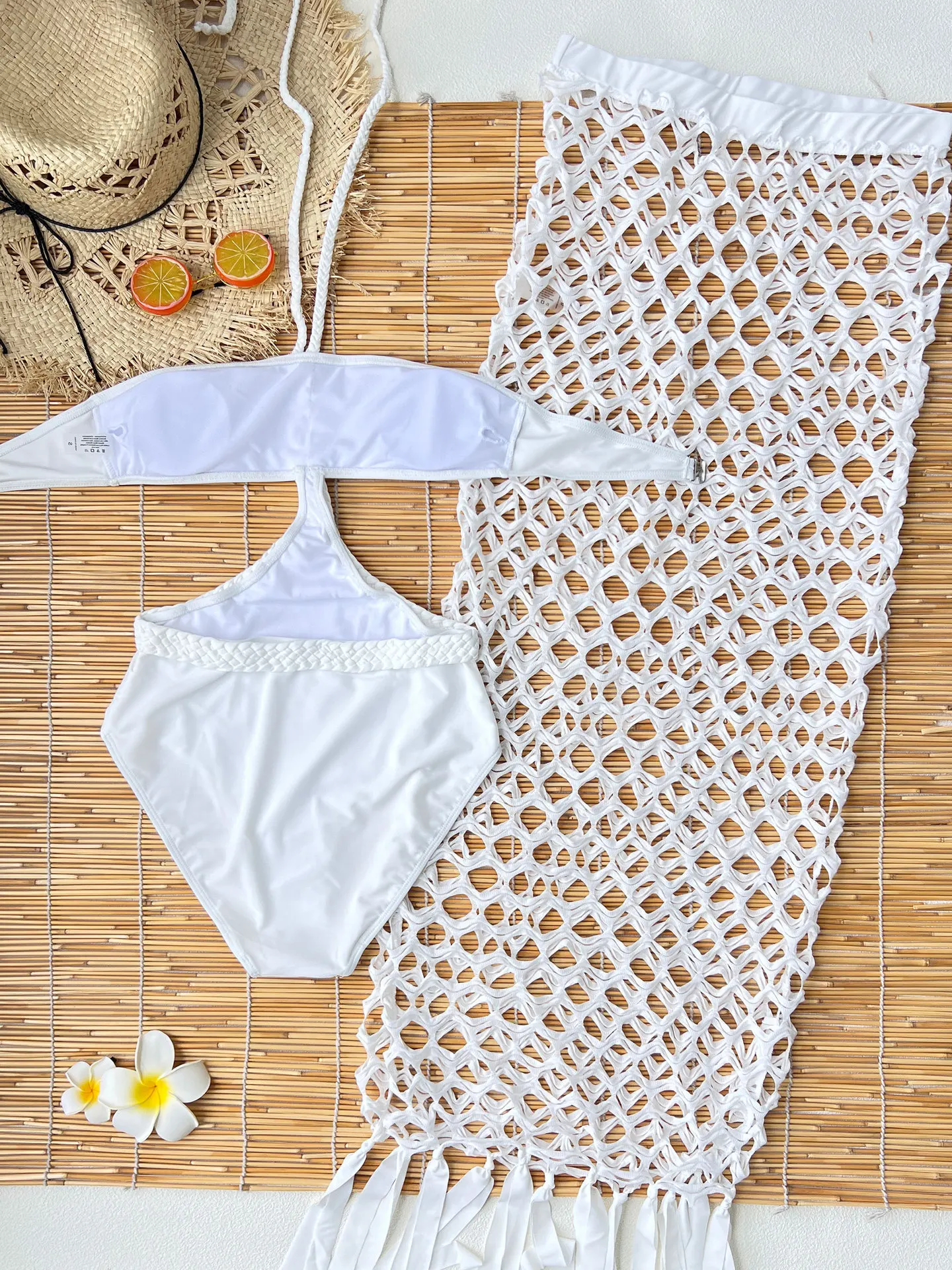 JSN 2026 Solid Two Piece Bikini Set with Tassel Cover up Custom Halter Swim Suit for Women Hollow Out Women's Beachwear