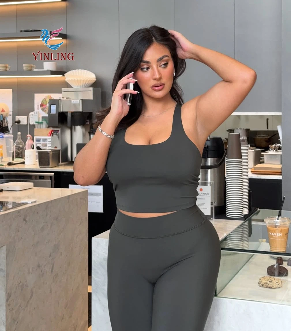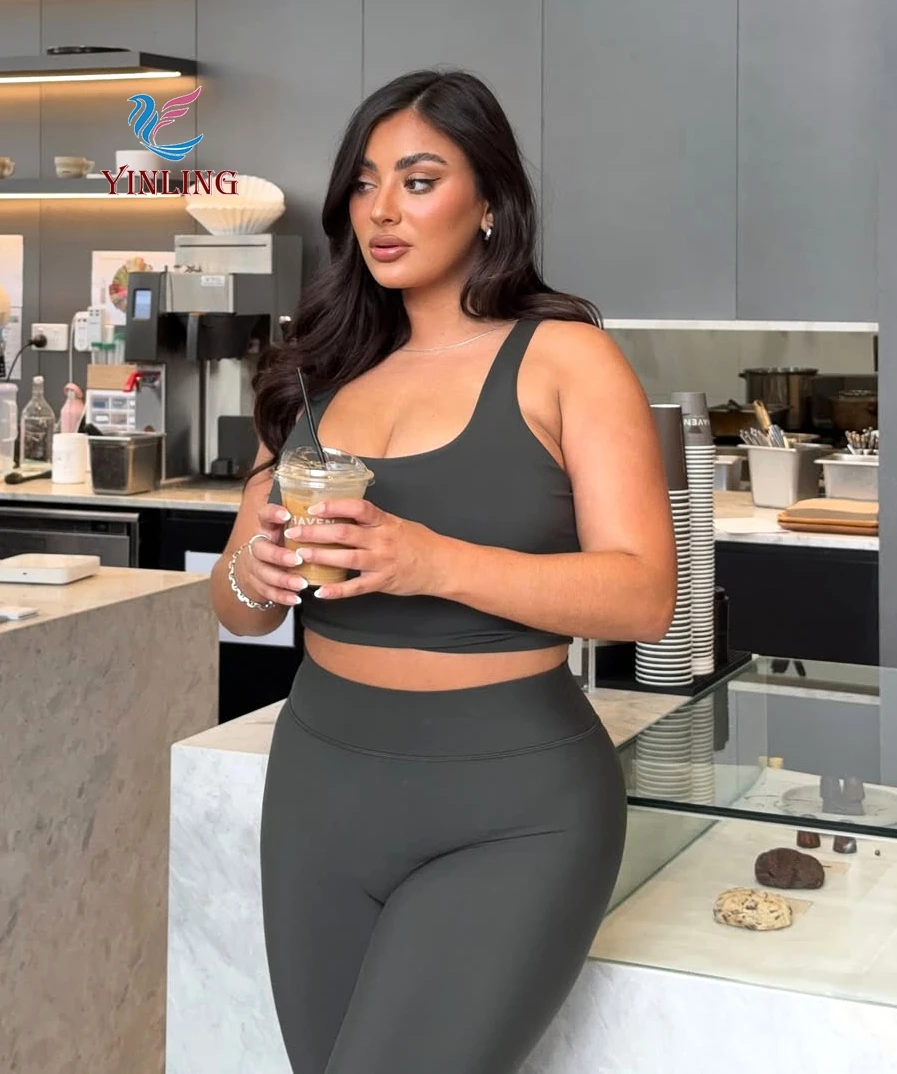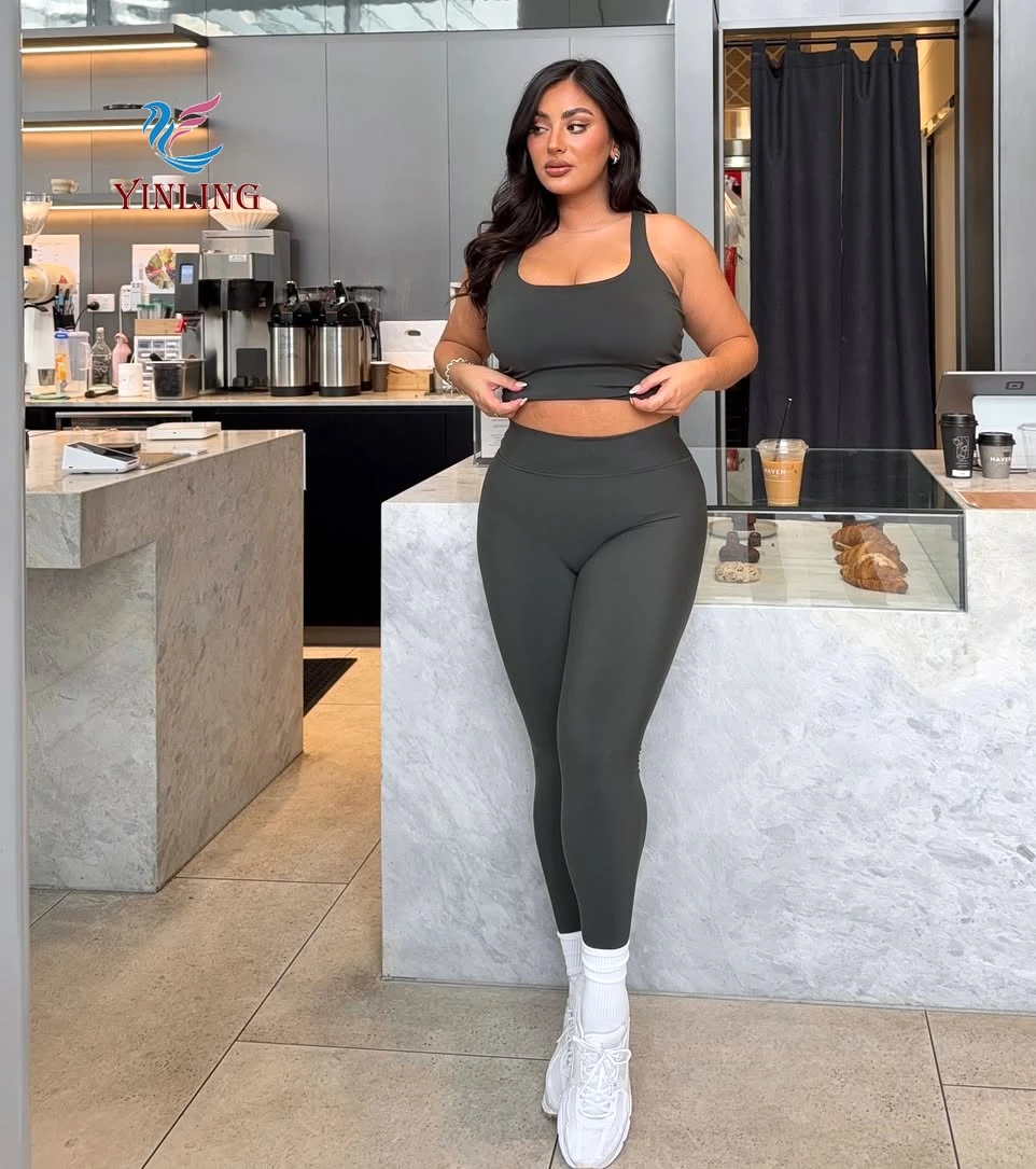 Backless Cross Padded Bras Fitness Set Sports Hip Line Front Plus Size Leggings Gym Sportswear Workout Women's Sets