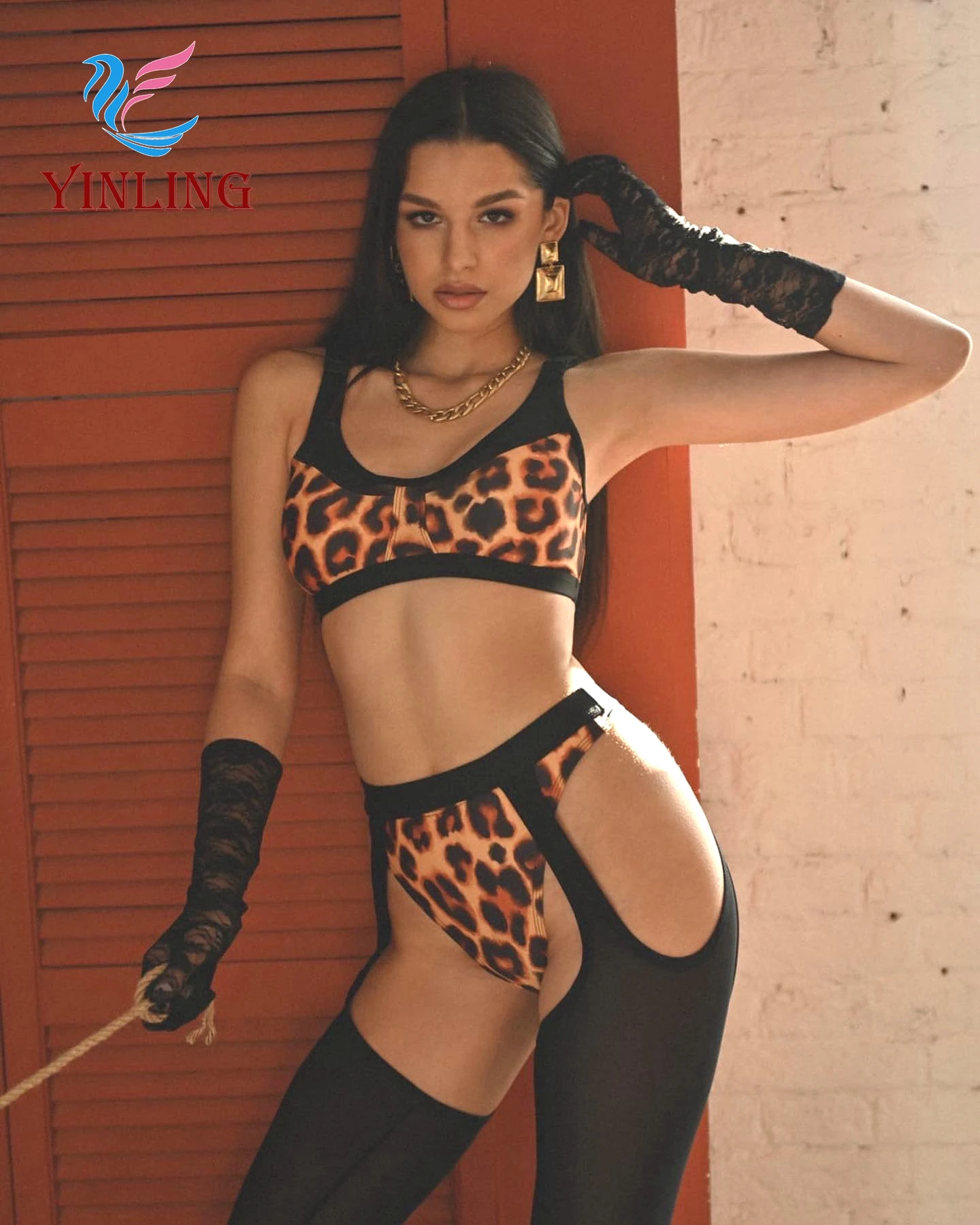 Private Label Made Pole Dance Clothes Leopard Print Exotic Sexy Garters Belt Pole Dance Wear