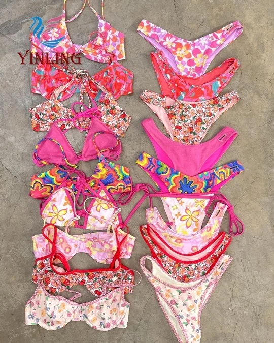 MLY Ruffle Bikini Summer Two Piece Suit Sexy Swimwear Bandage Biquini Triangle Swimsuit Printed Bathsuit