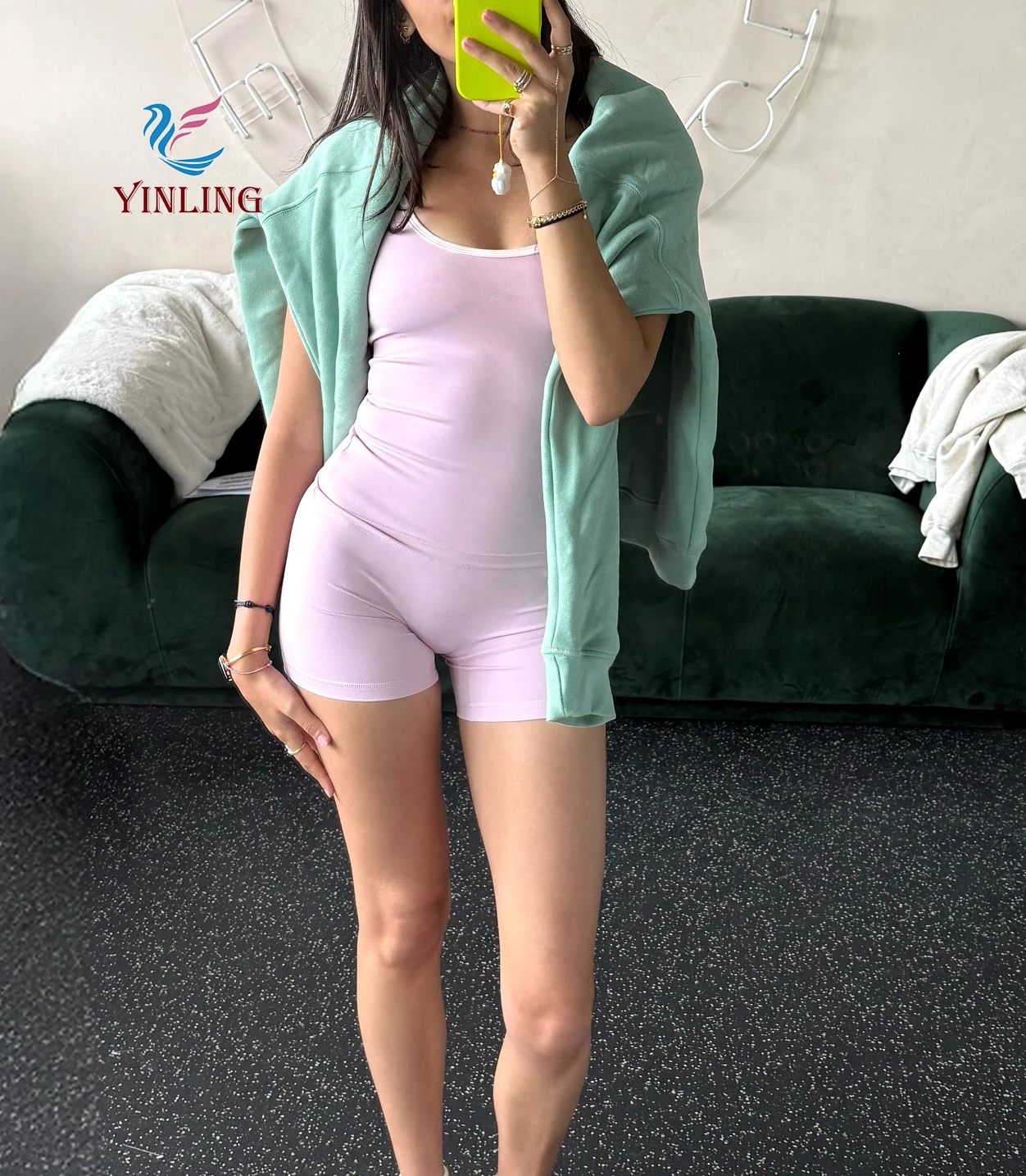 Cross Twists Knot Back Shorts Yoga Romper V-waist Pleated Fitness Workout Yoga Bodysuit Women One Piece Sports Jumpsuit