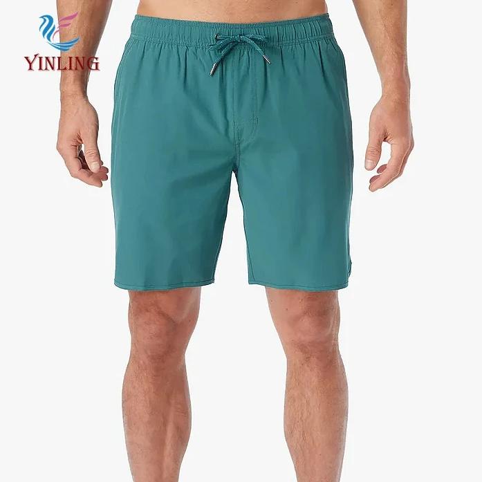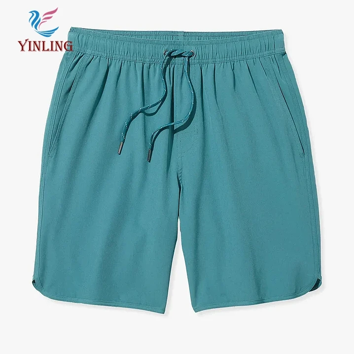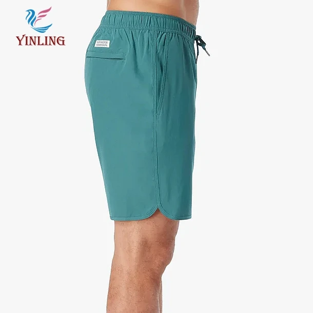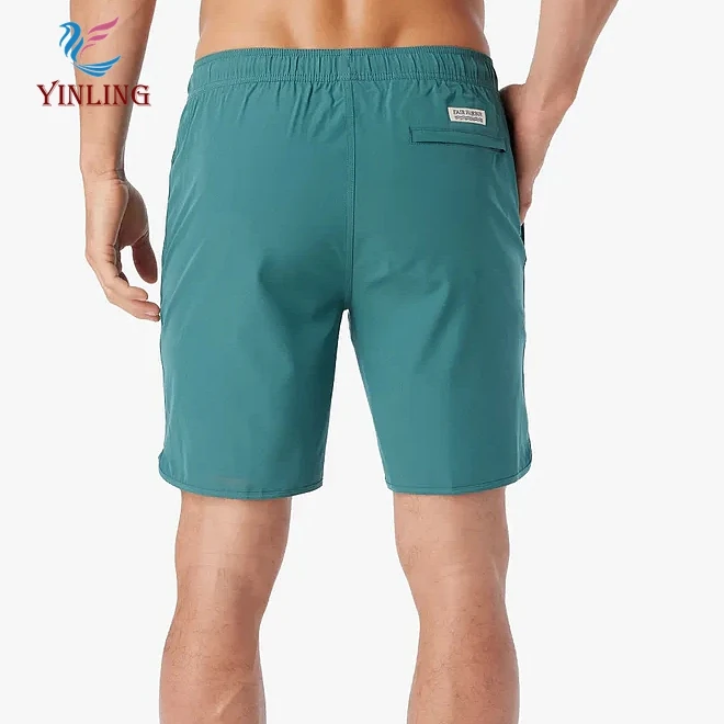 New Fashion Men's High Waist Board Shorts Solid Color Custom Beach Swim Trunks With Utility Side Pocket